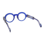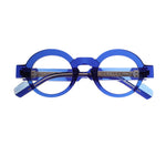 Anne Et Valentin Wills 22D04 blaues optisches Modell, runde Form aus Acetat, handgefertigt in Frankreich.