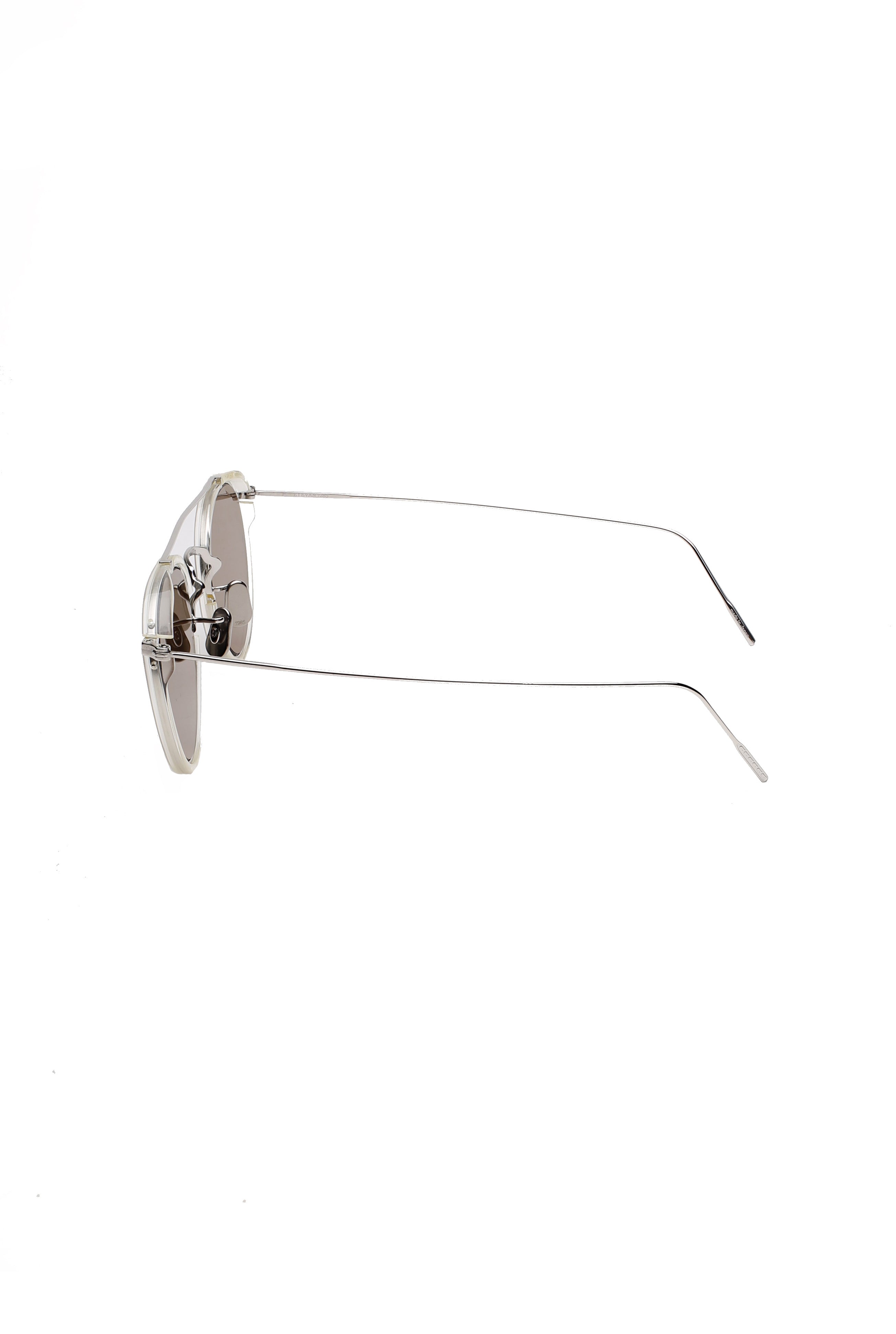 Eyevan 7285 762 3070 sun modello da sole colore trasparente, forma aviator in titanio ed acetato fatto a mano in Giappone.