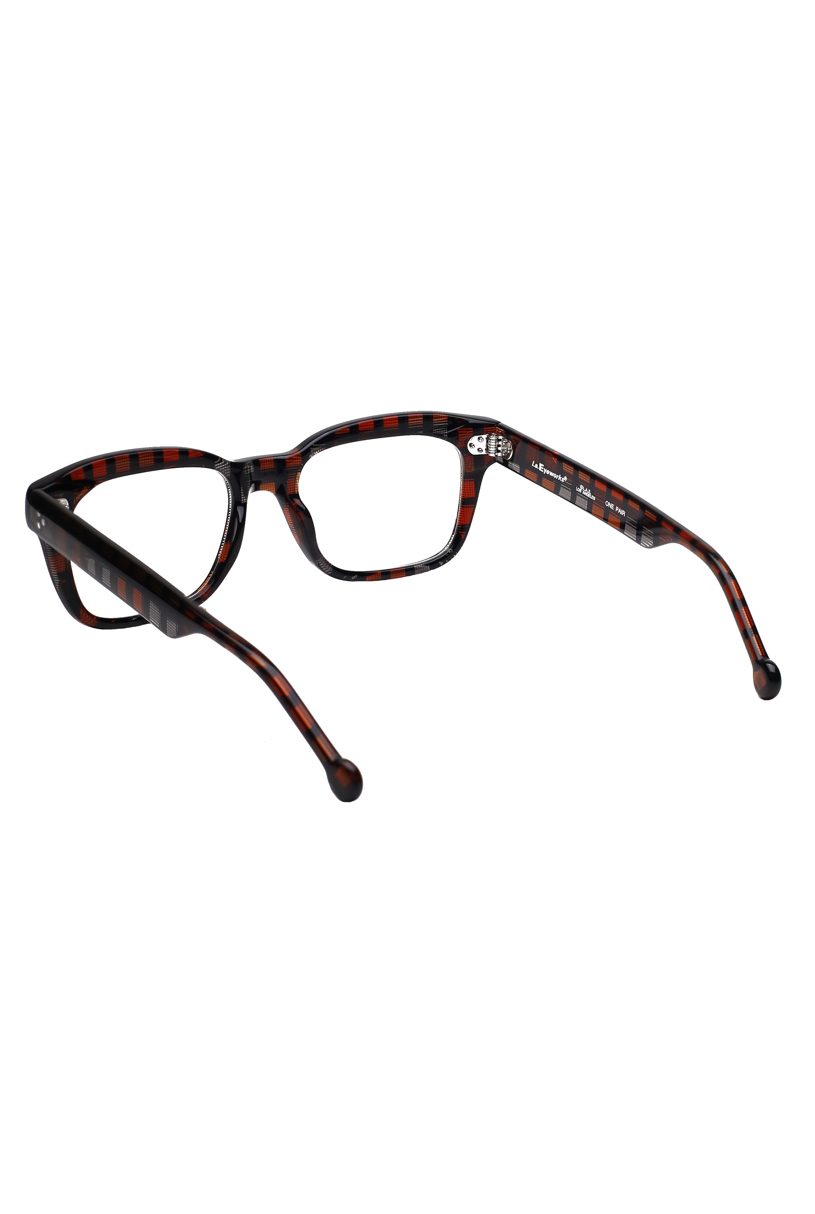 L.A Eyeworks Duke Minus modello da vista, forma rettangolare in acetato fatto a mano in Giappone.