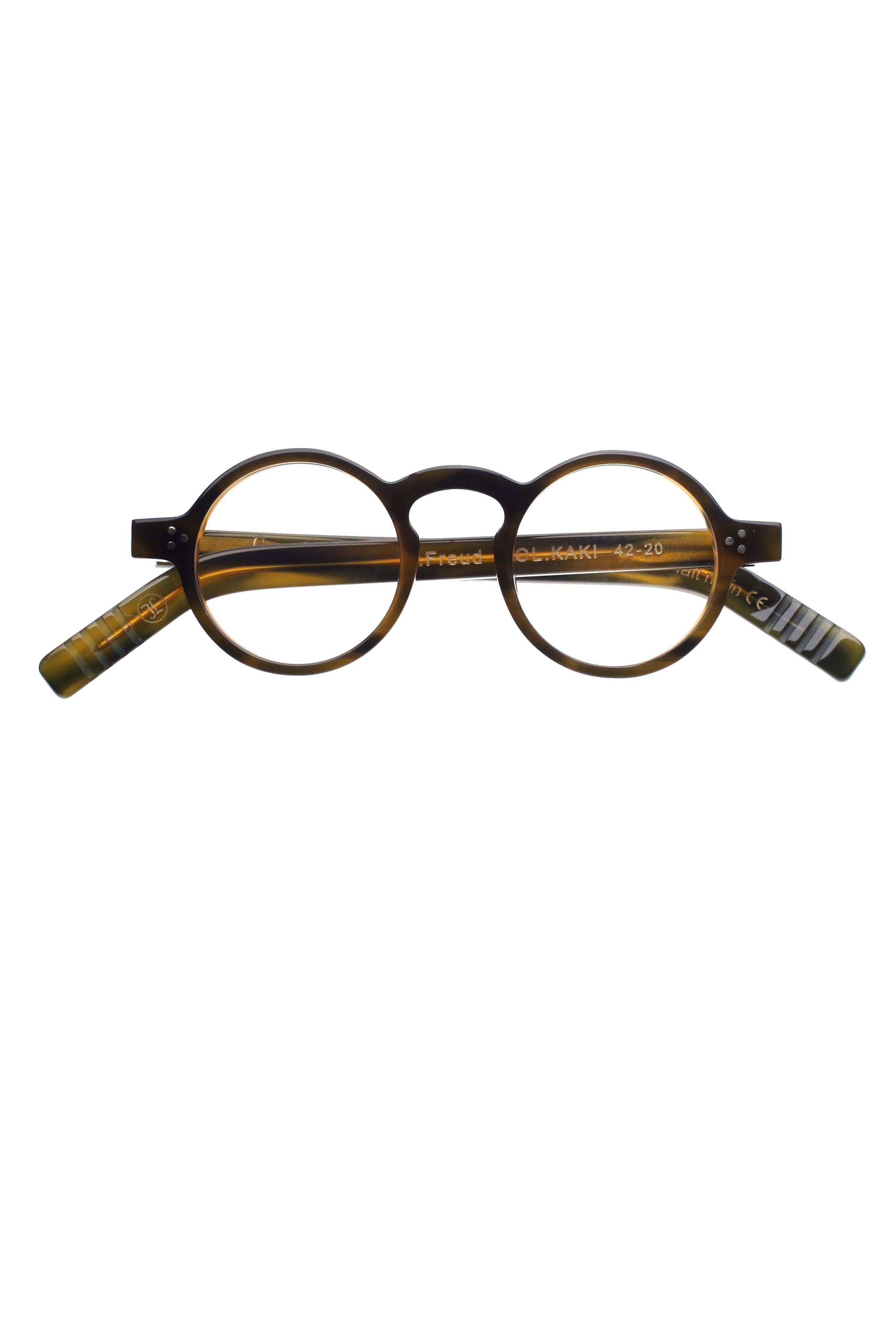 Il modello Lesca S. Freud kaki è un occhiale da vista dalla forma rotonda, realizzato in acetato verde scuro e interamente fatto a mano in Francia. Appartenente a una linea che rende omaggio al grandi pensatore della psicoanalisi, interpreta una silhouette essenziale con proporzioni compatte e un design che privilegia equilibrio e concentrazione visiva.