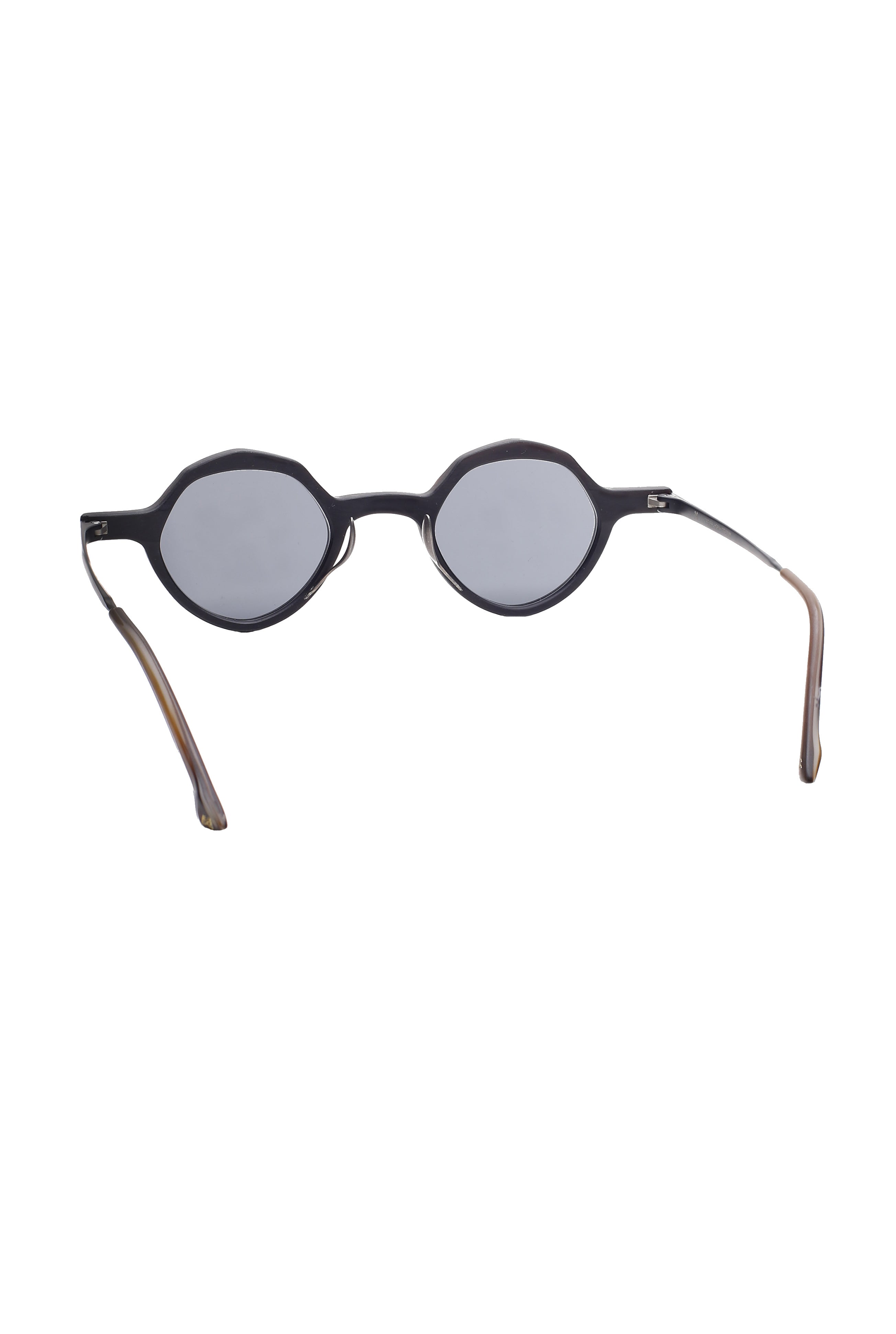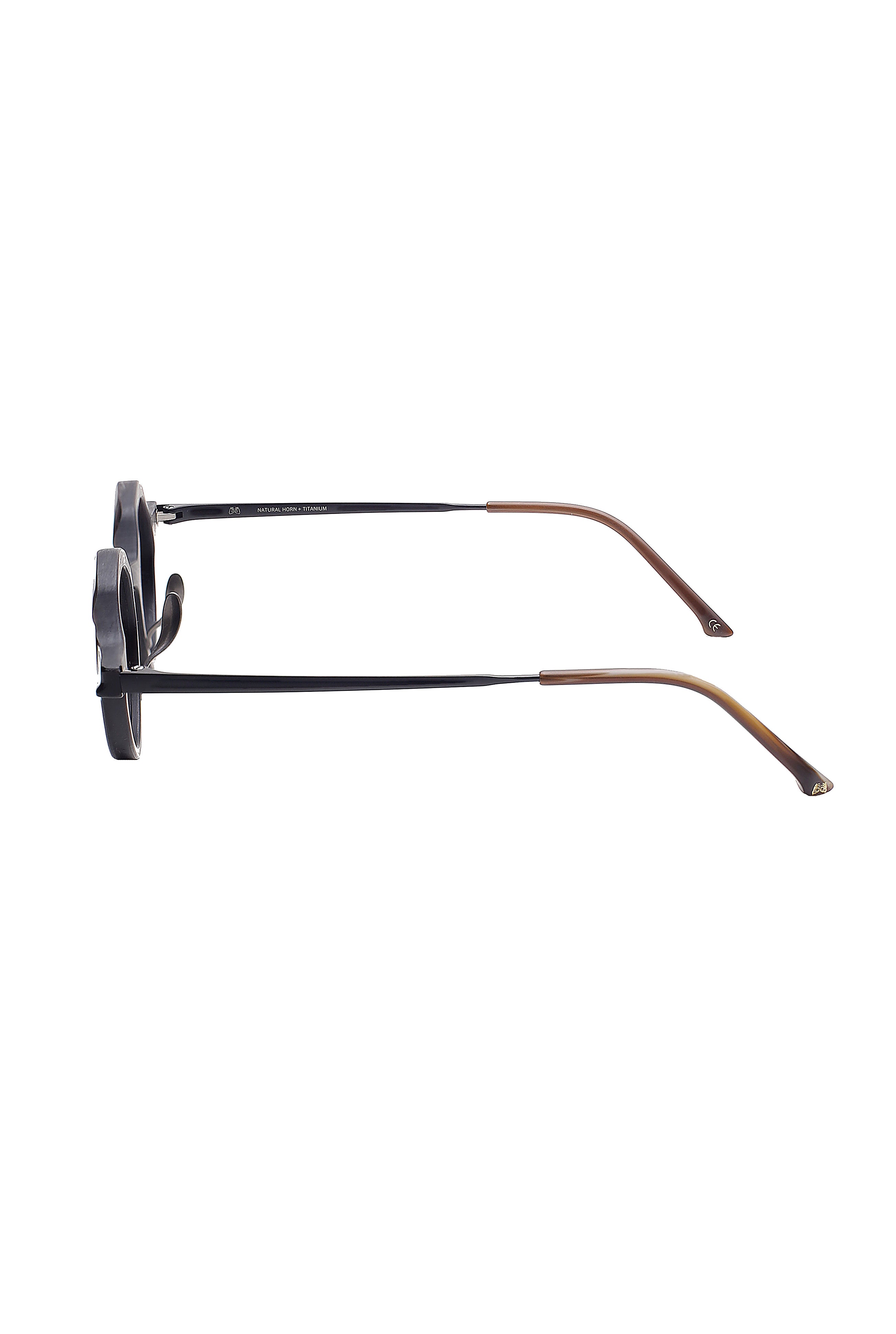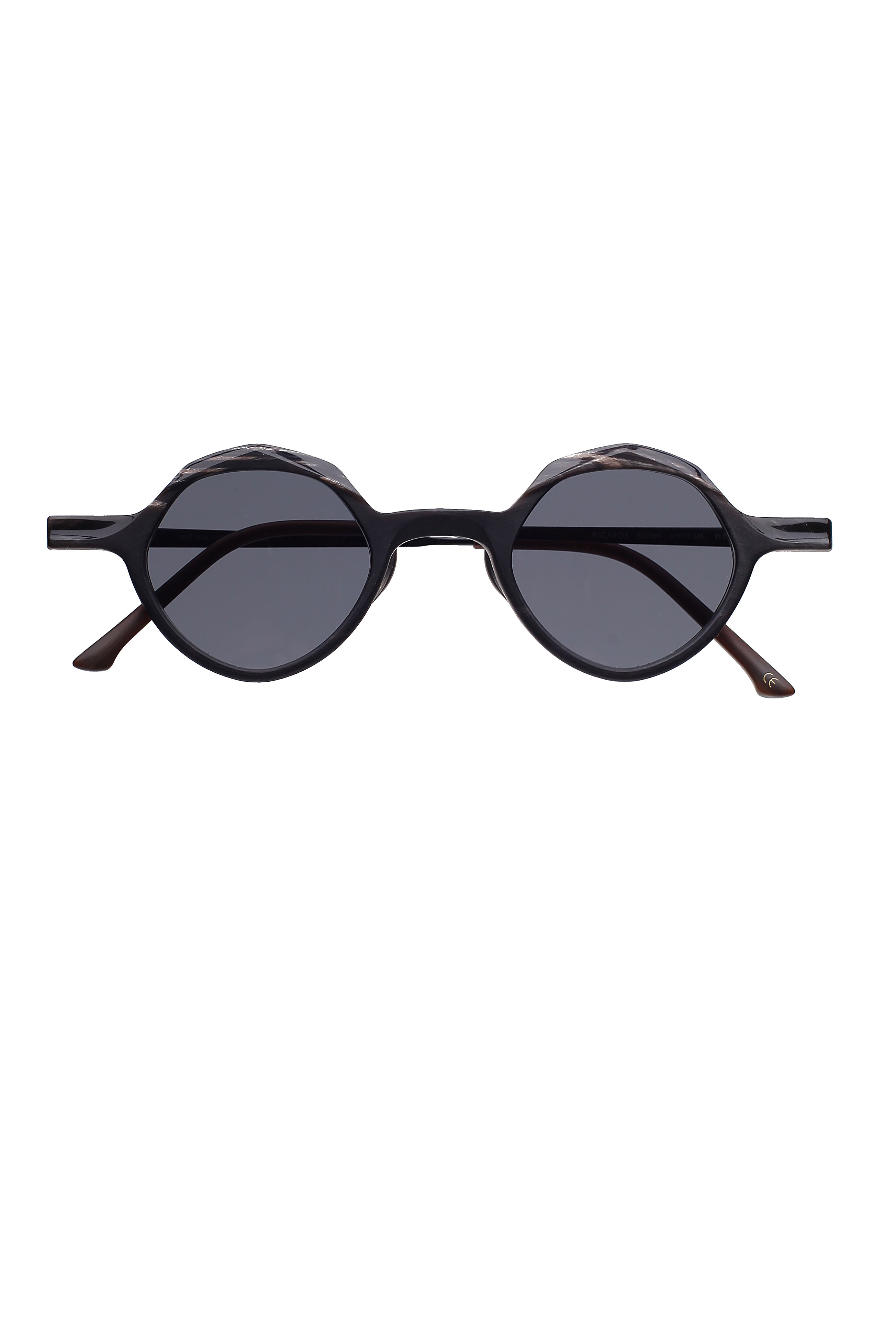 Il Rigards RG 1094 Black White è un occhiale da sole realizzato in corno naturale e titanio, materiali che definiscono l'identità artigianale del brand. La forma rotonda, essenziale e bilanciata, incontra una lavorazione manuale che mette in risalto venature, sfumature e piccole variazioni organiche proprie del corno, rendendo ogni montatura un pezzo unico.
