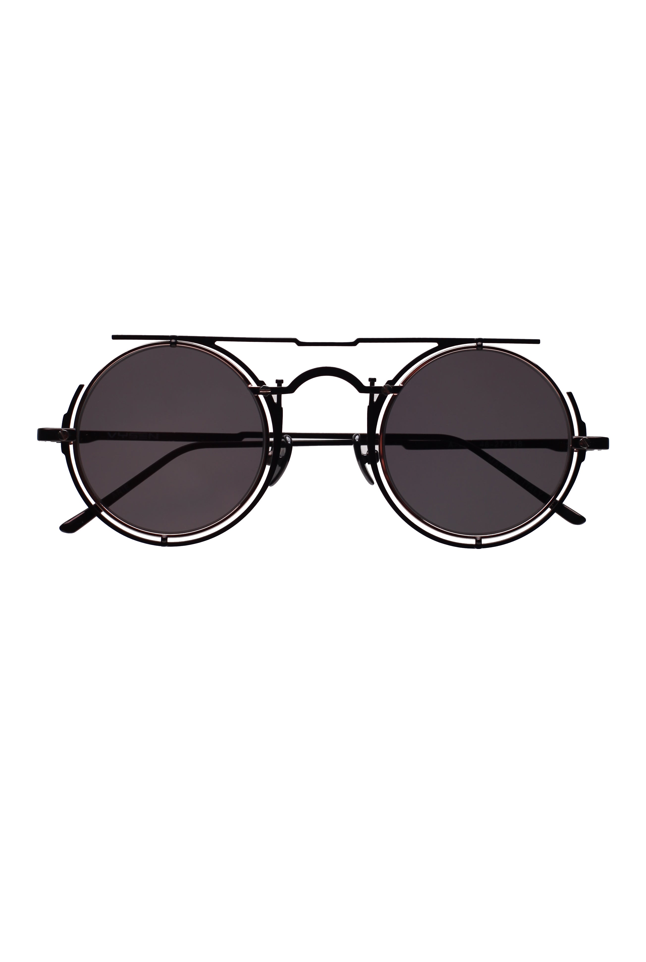 Vysen Arie A-1 matte dark gun/shiny modello da sole, forma rotonda in acciaio fatto a mano in Italia.