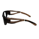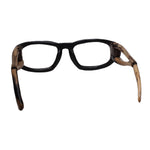 Adam Mugavero anni 80 modello da vista colore marrone, forma rettangolare pezzo unico in legno, argento e metallo fatto a mano a New York.