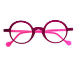 Anne Et Valentin Abby 22a13 modello da vista colore fucsia, forma rotonda in acetato fatto a mano in Francia.