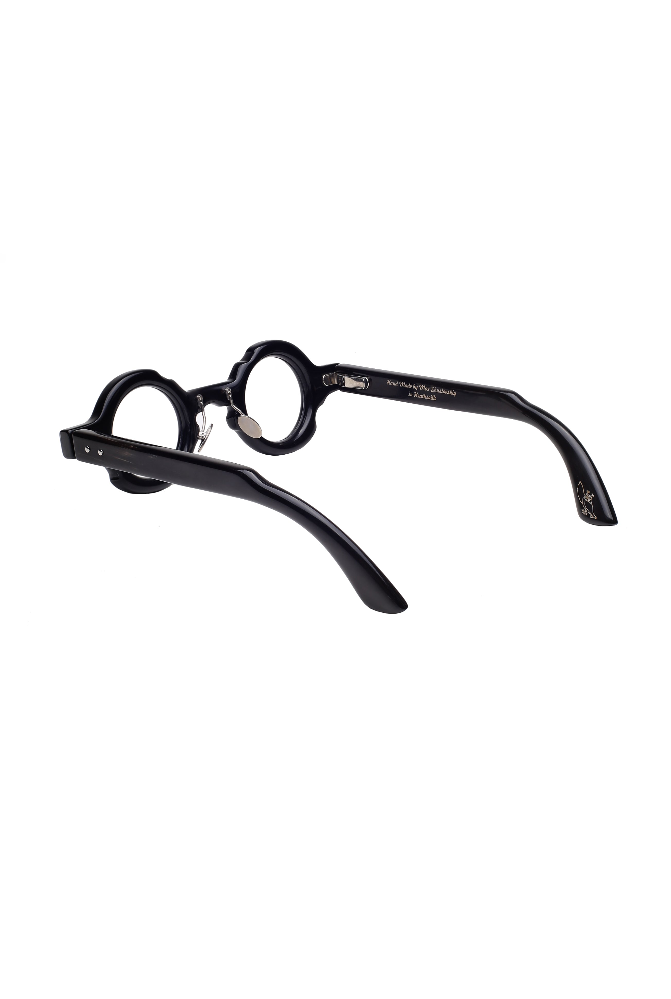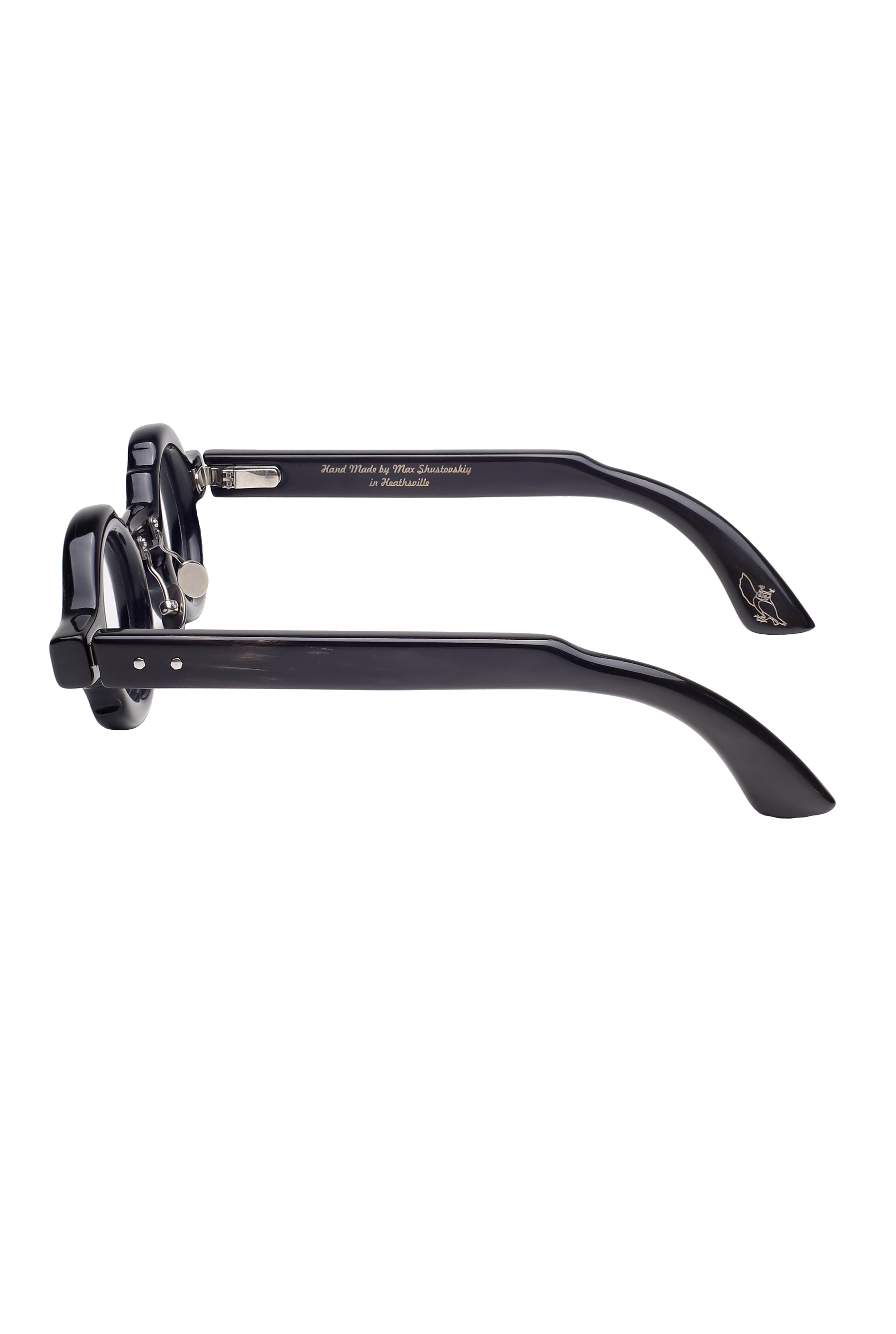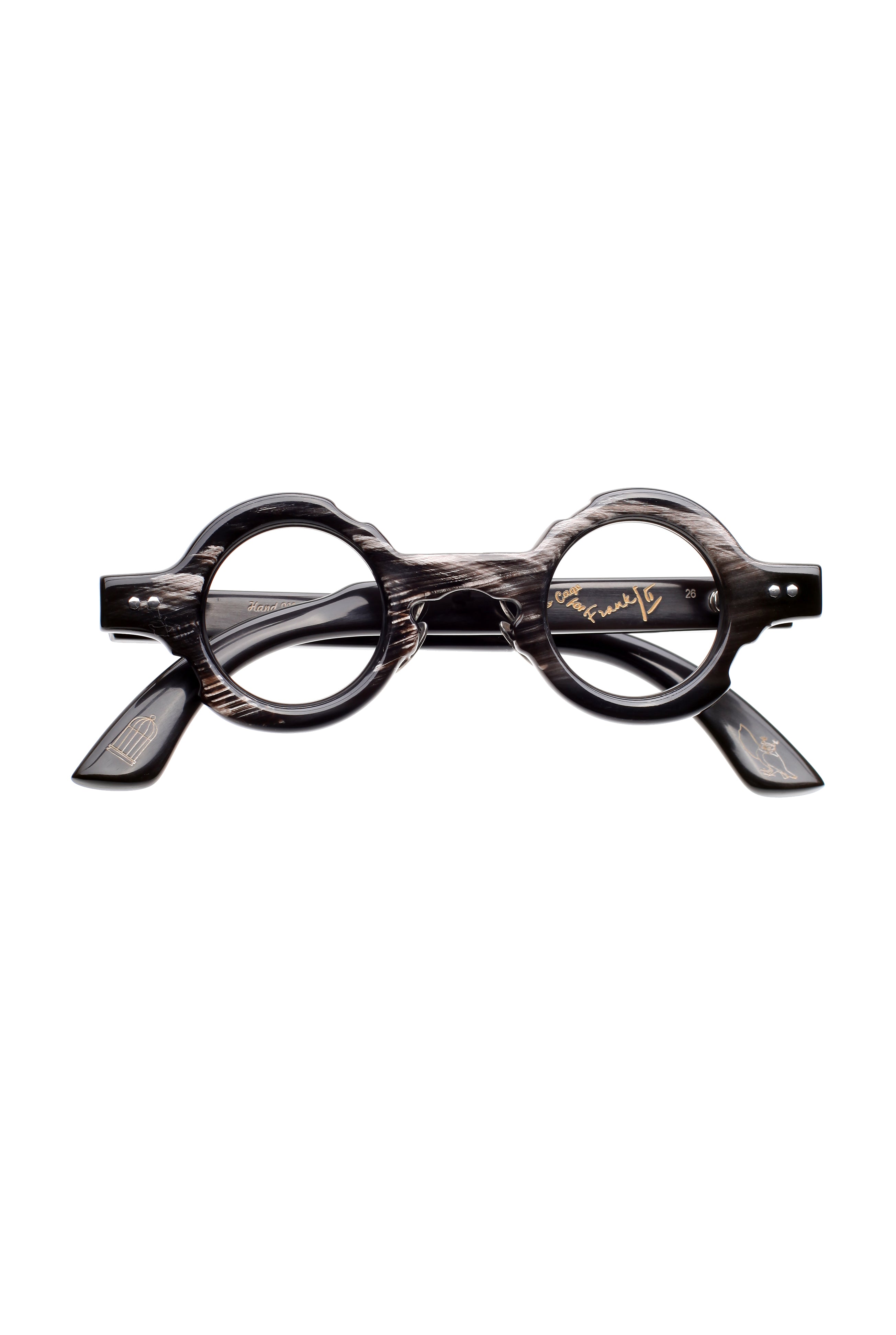 Bird & Cage x Frank Lo Bites bk dark brown mix color optical model, round shape in natural horn handmade in New York.