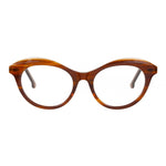 LA Eyeworks Fiction Brush glt brown optical model, cat shape in acetate handmade in Japan.