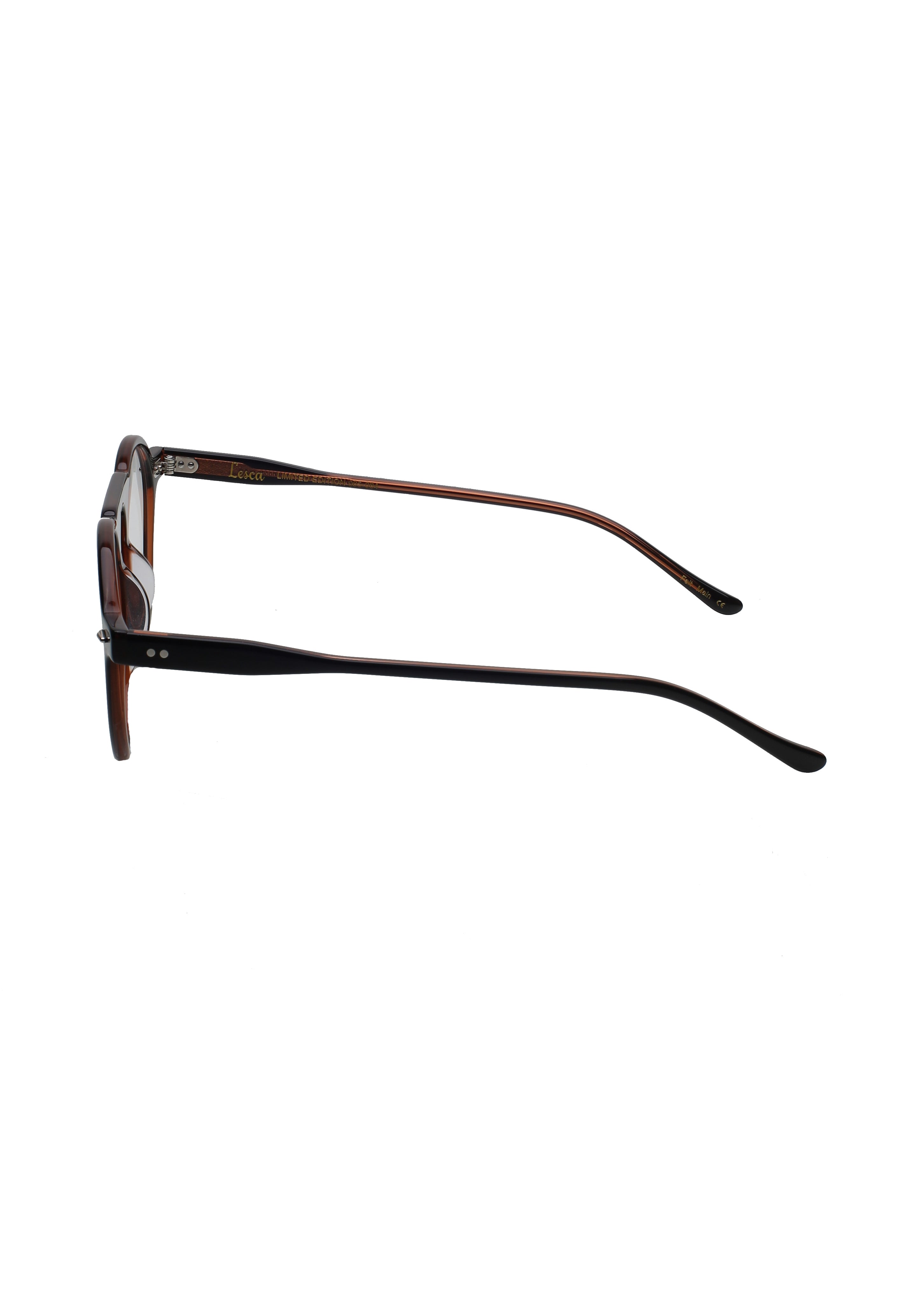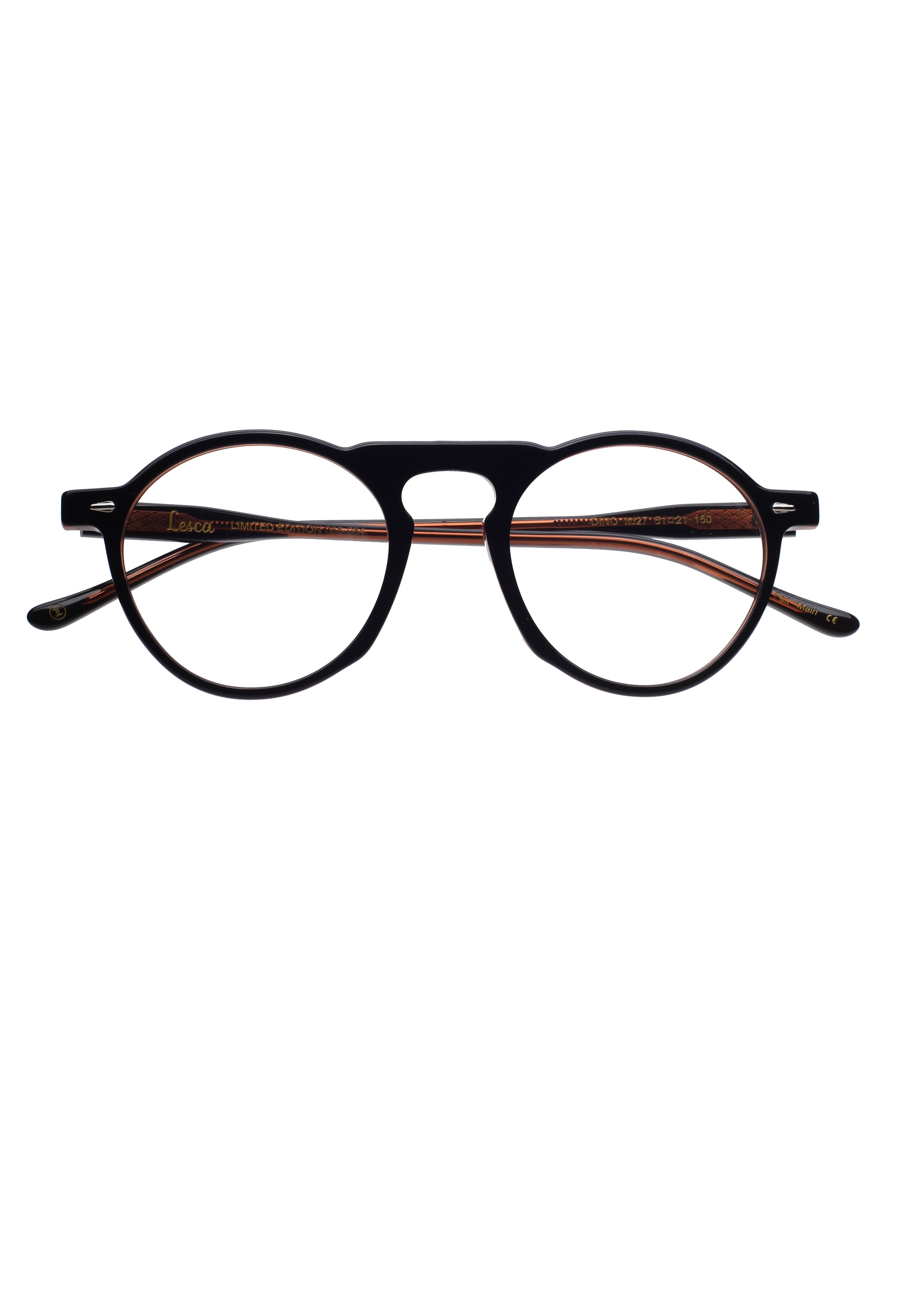 Lesca Dino ltd27 limited edition 065-084 modello da vista colore nero e marrone, forma rotonda in acetato fatto a mano in Francia.