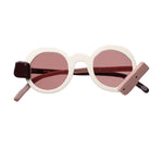 Masahiro Maruyama 0096 sun 3 ivory brown beige modello da sole colore bianco, marrone e beige, forma rotonda pezzo unico customizzato in negozio, in acetato fatto a mano in Giappone.