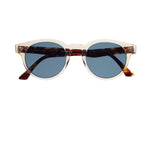 Masunaga KK 076 u s s30 usg-yl/de mineral polarized lenses modello da sole colore beige e marrone, forma rotonda in acetato fatto a mano in Giappone.