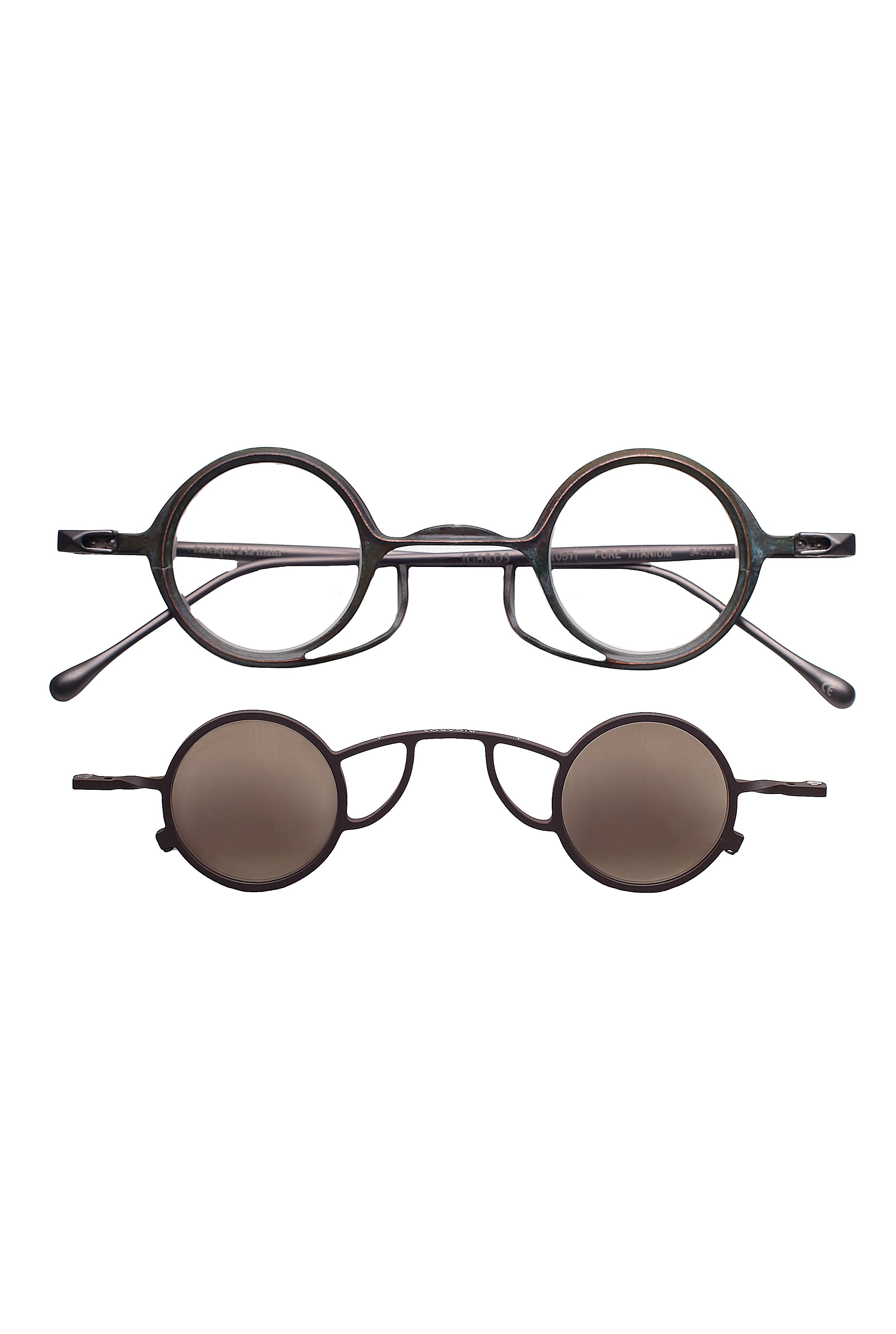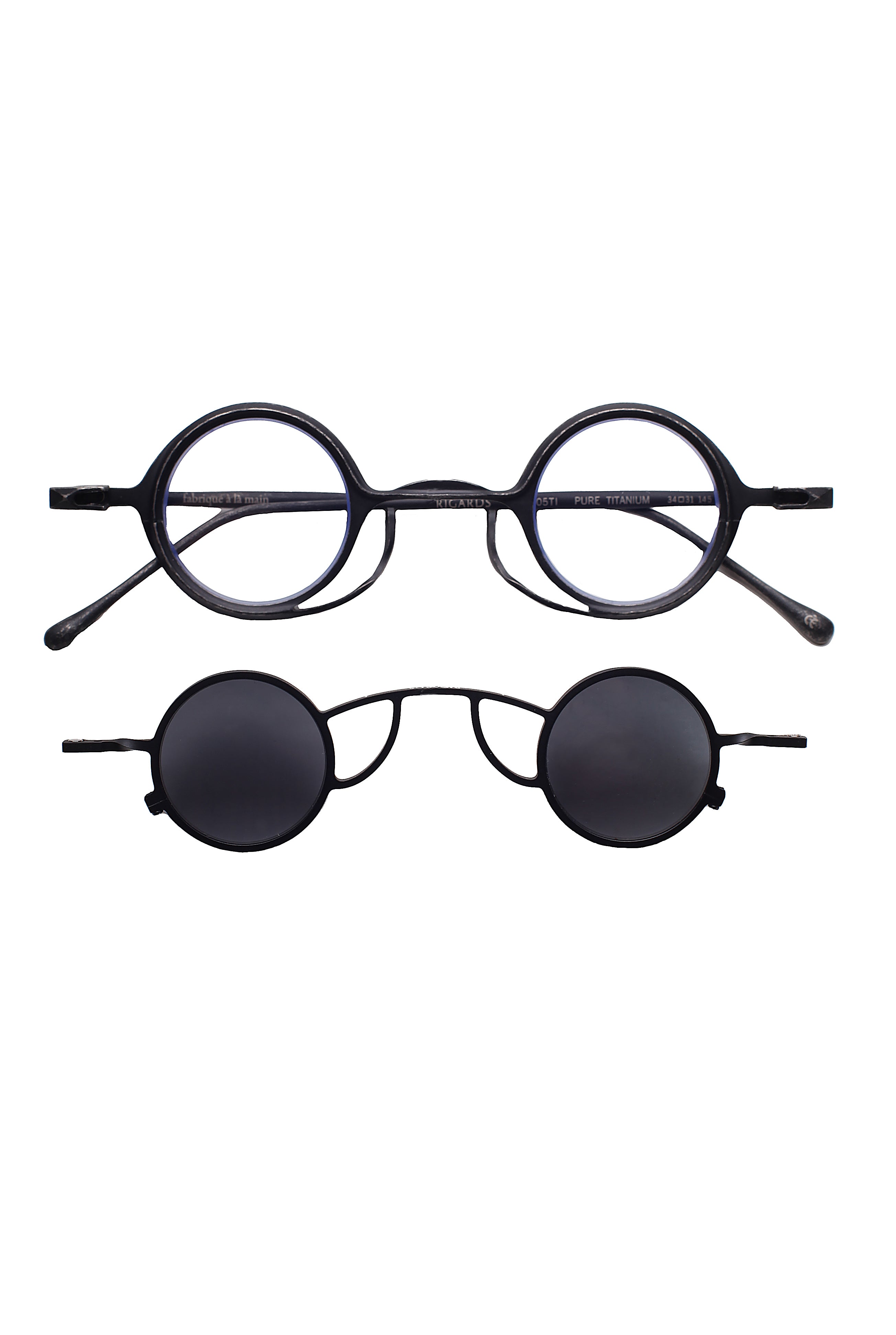 Rigards Rg 0105 ti modello da vista con clip da sole, forma rotonda in titanio fatto a mano.