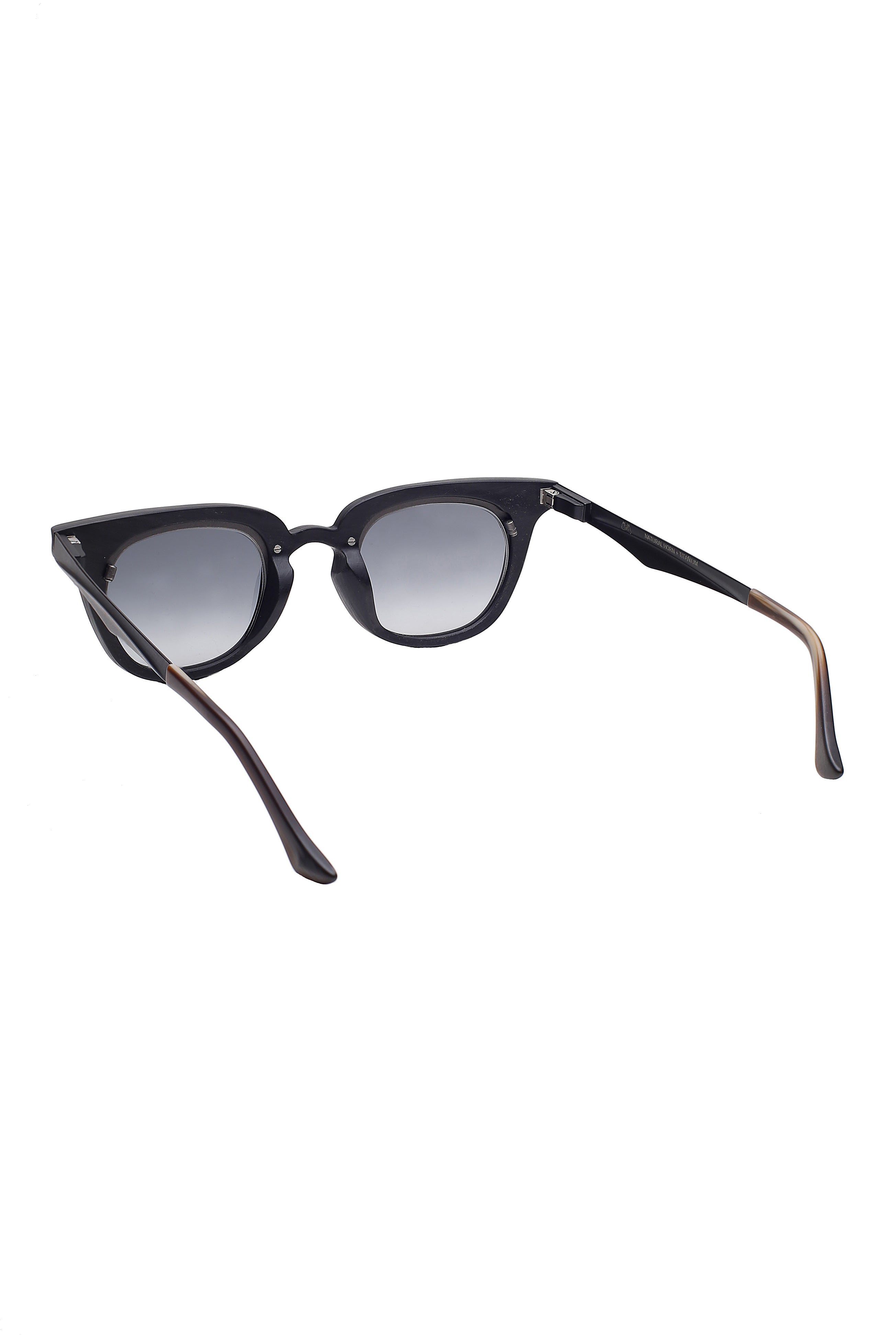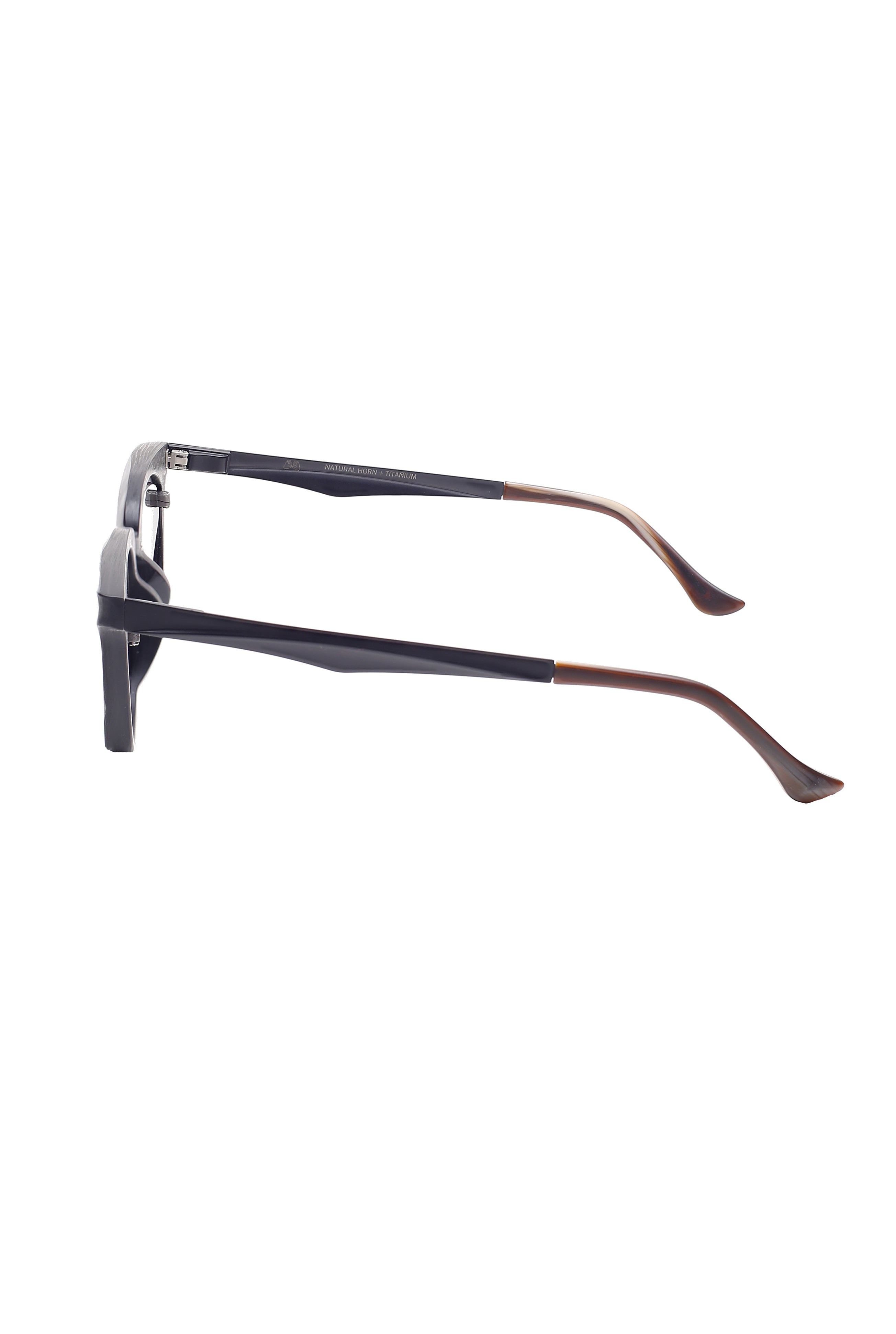 Il frontale, scolpito a mano, presenta linee nette ma non rigide, tipiche della visione estetica di Rigards eyewear: un dialogo tra superfici organiche, proporzioni studiate e dettagli minimali. Il titanio contribuisce alla leggerezza complessiva del modello, assicurando comfort e stabilità anche con un design più deciso. La combinazione black e white valorizza la texture naturale del corno, creando un contrasto elegante e distintivo.