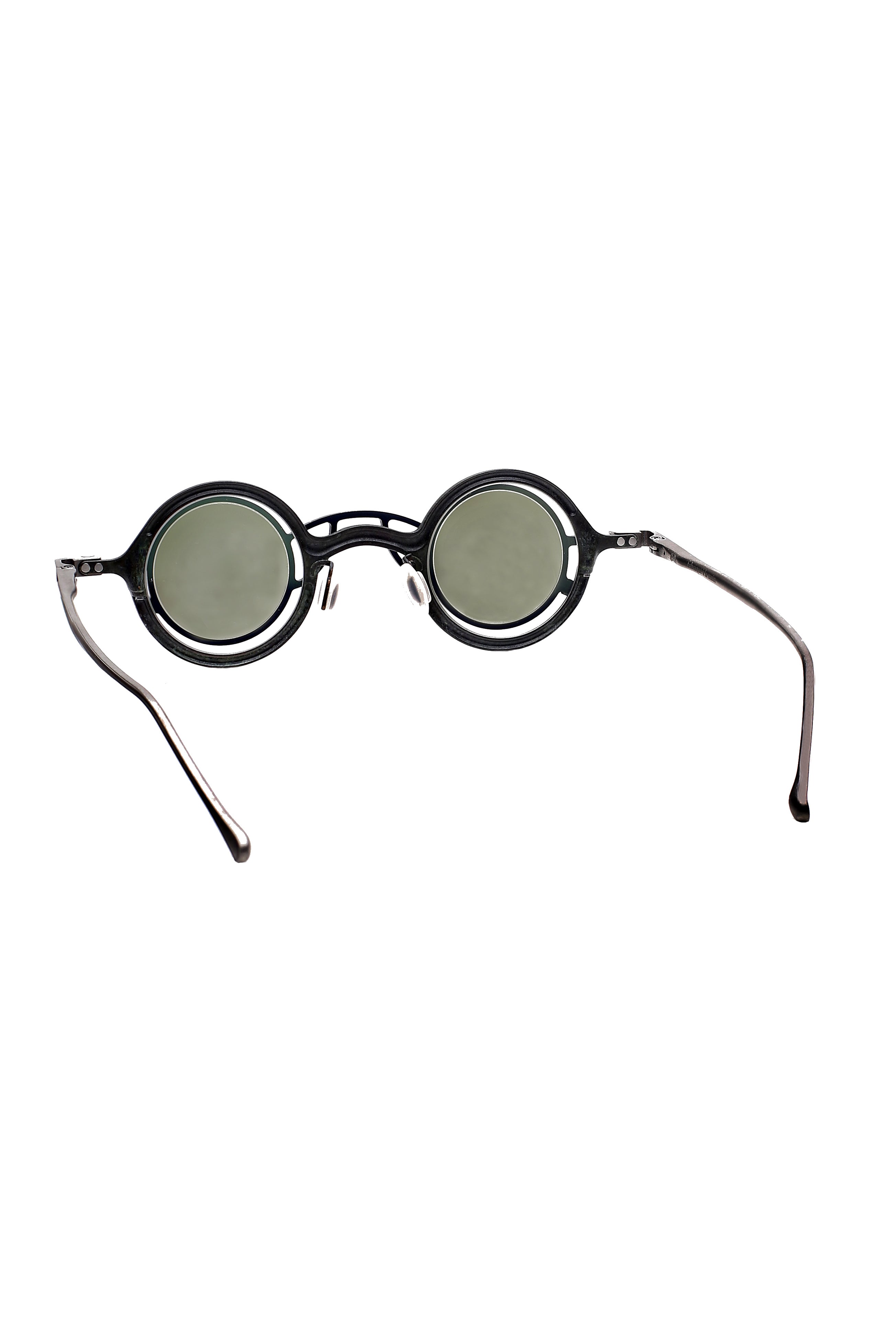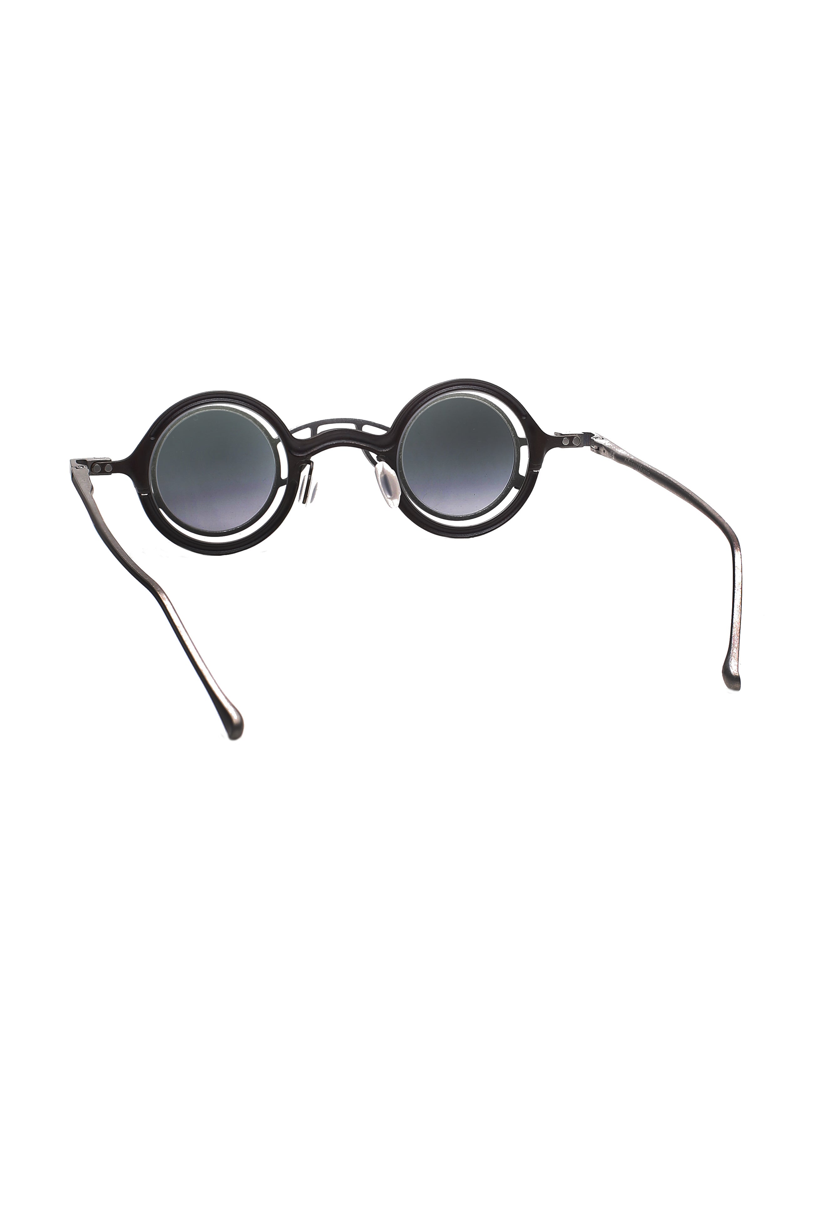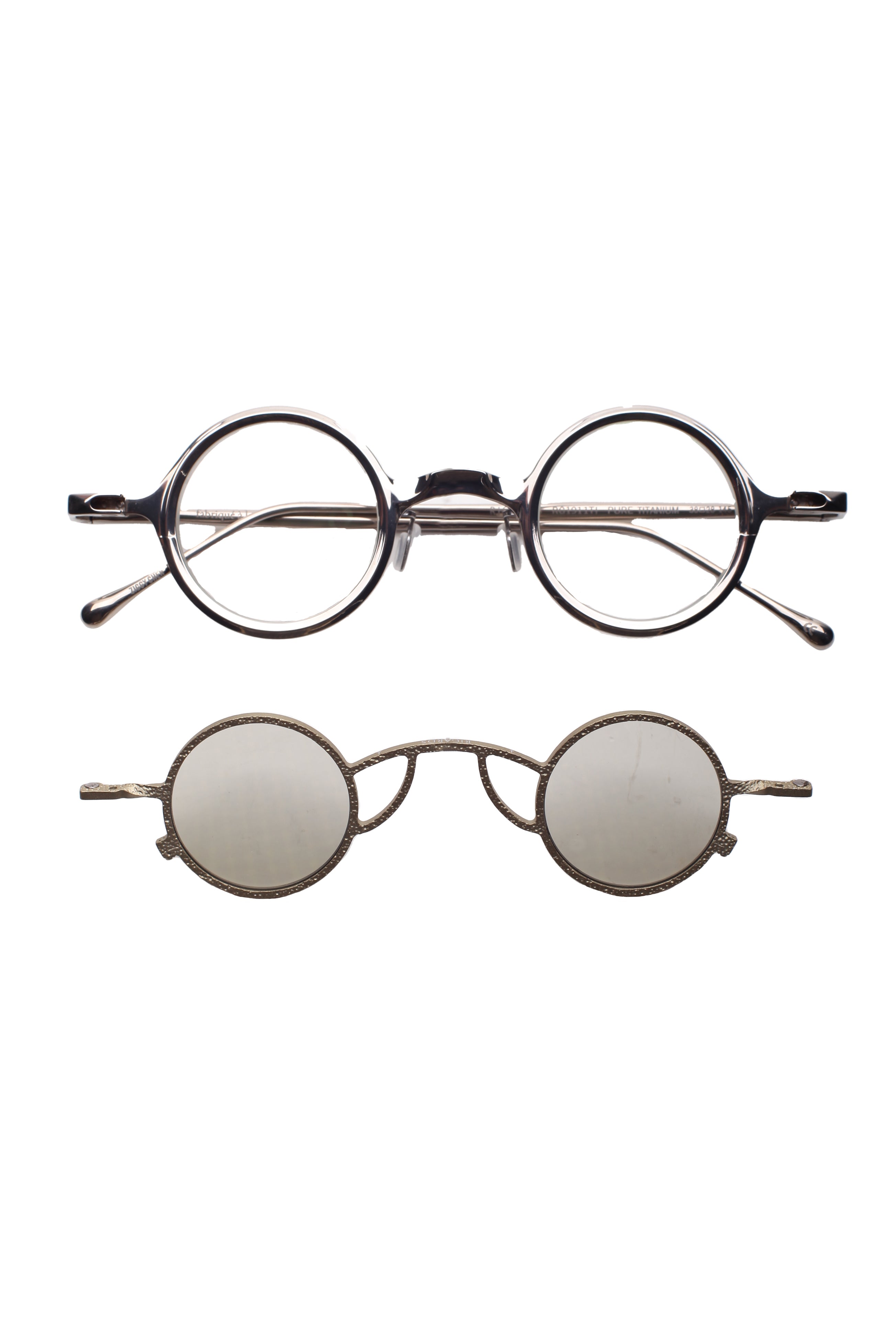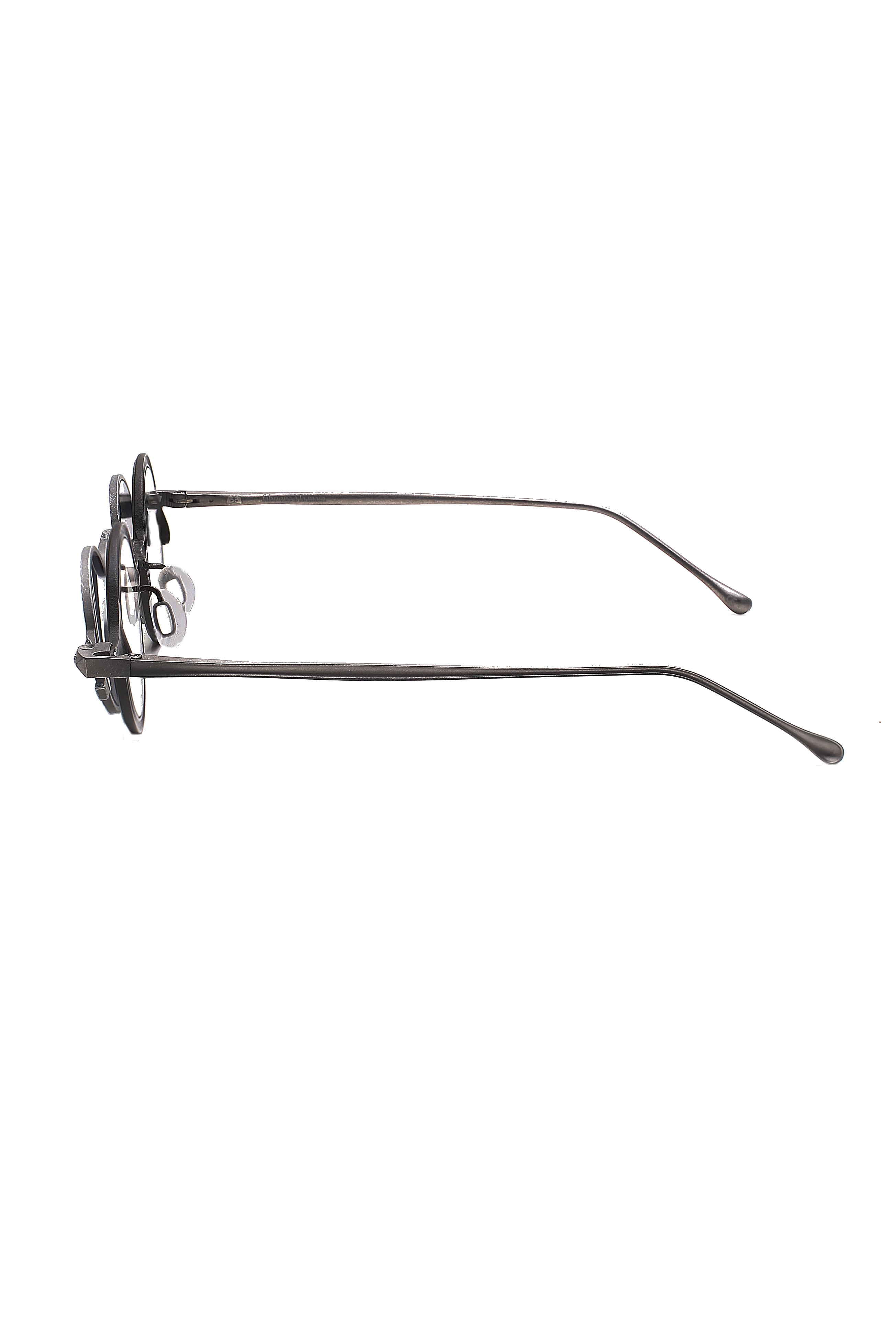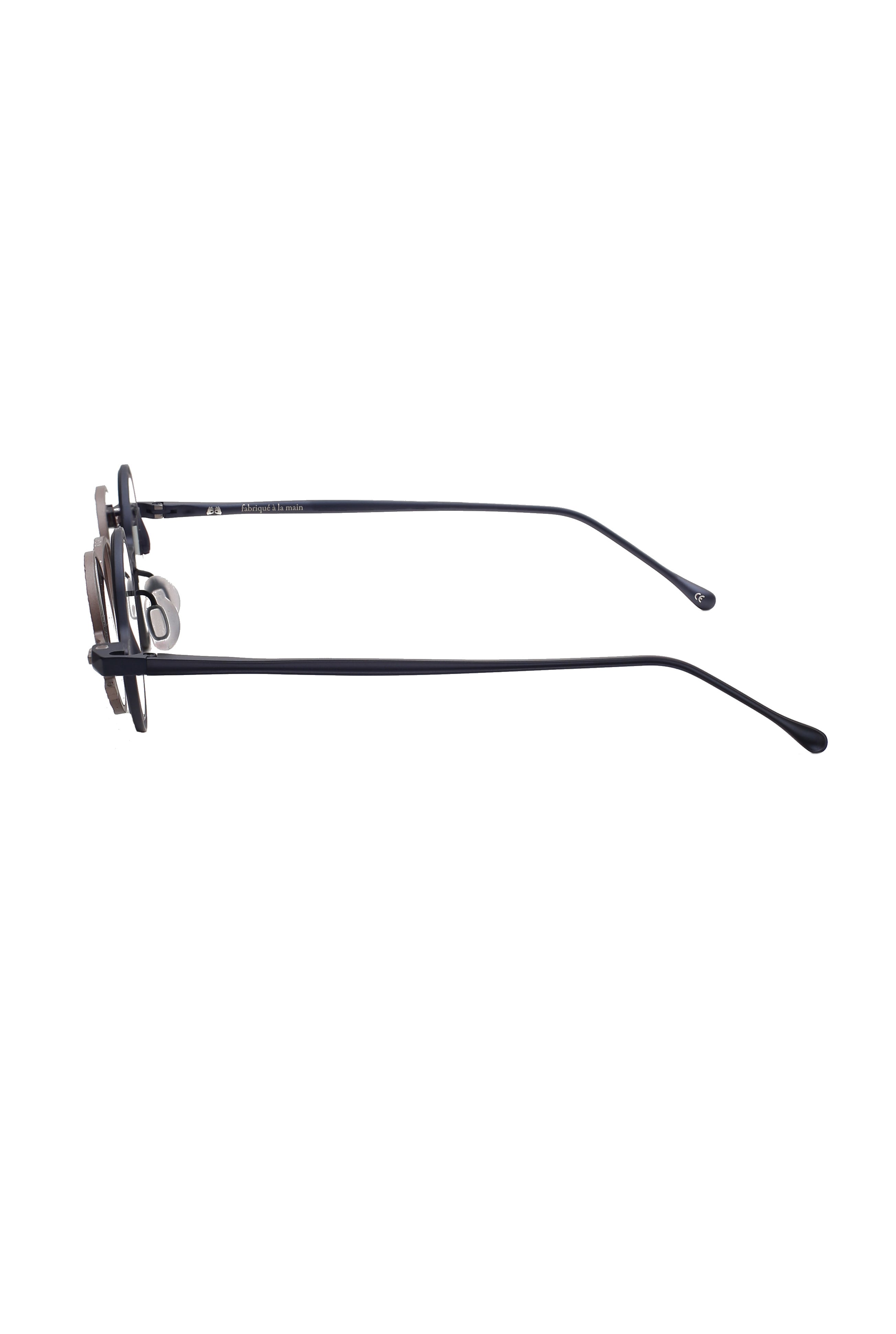 La montatura è completata da un clip da sole dedicato, elemento distintivo della serie, che permette di trasformare l’occhiale mantenendo armonia tra volume, texture e proporzioni. Le varie combinazioni cromatiche, dalle finiture matte ai trattamenti più lucidi, esaltano la natura materica del titanio, rendendo ogni occhiale un pezzo unico nel suo equilibrio tra sperimentazione e minimalismo contemporaneo.