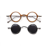 Rigards Rg 1912cu+clip titanium matte optical model with clip sunglasses, round shape in handmade copper and titanium.