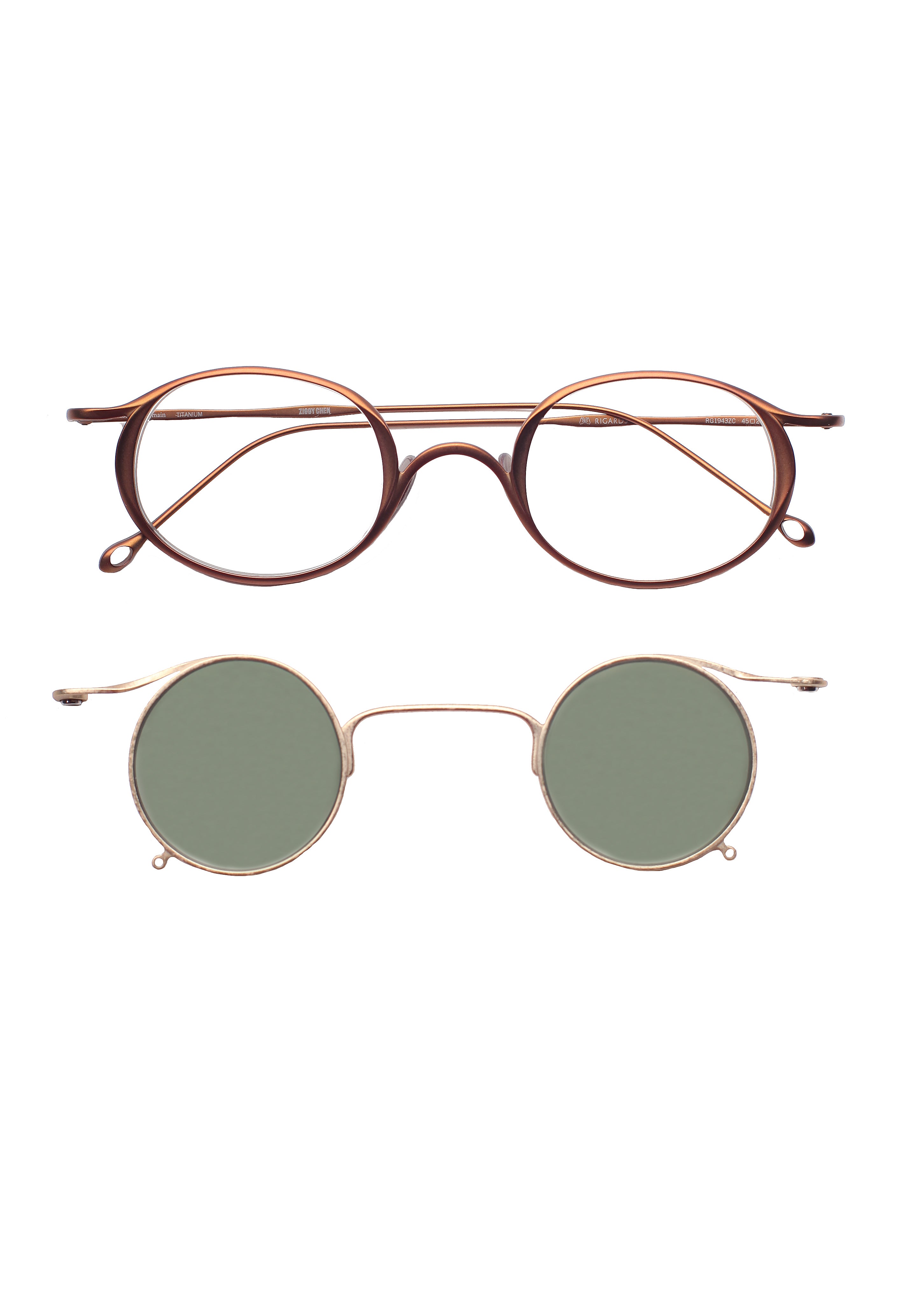 Rigards RG 1943 Zc+Ziggy Chen modello da vista+clip da sole, forma rotonda in titanio fatto a mano.