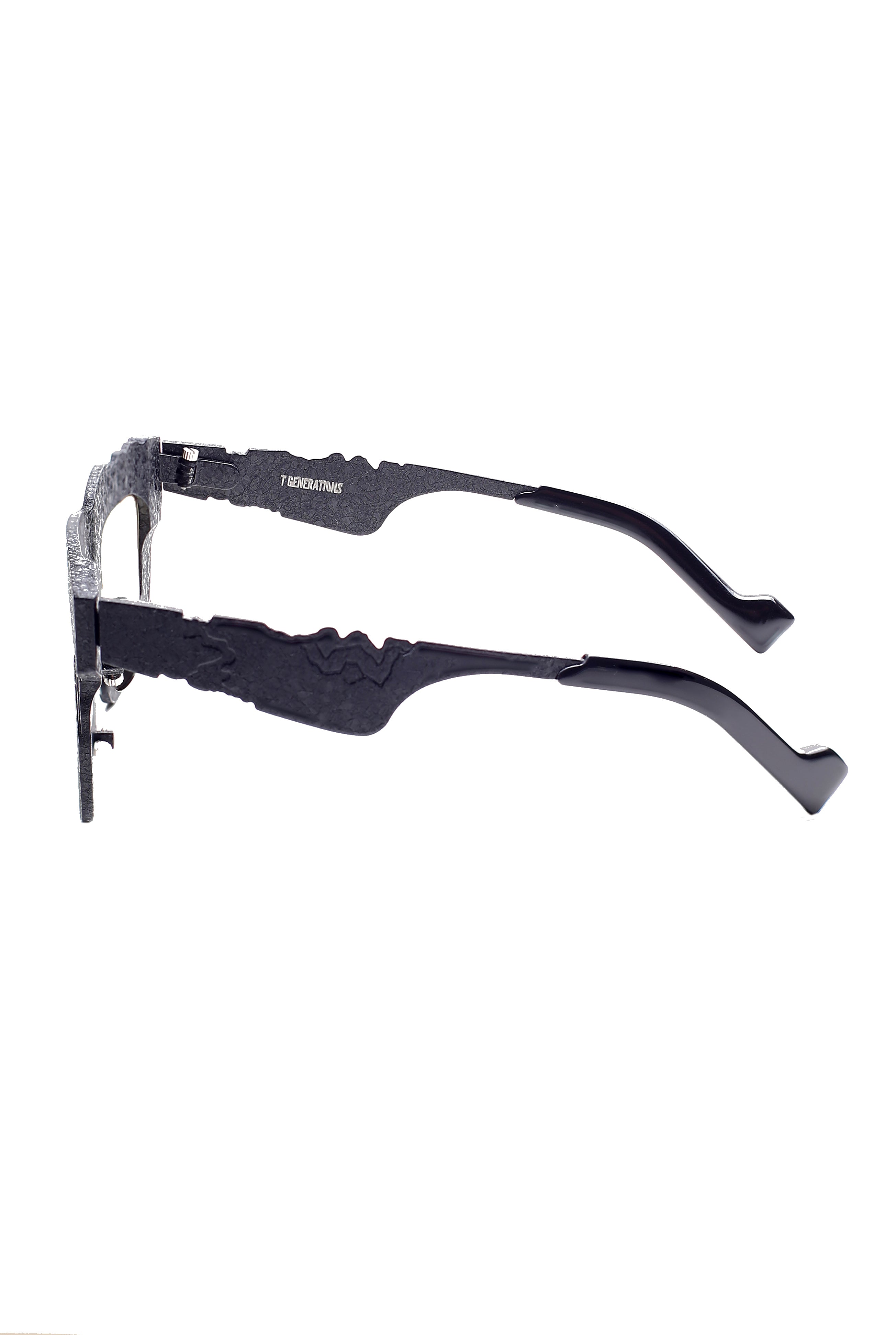 T Generations Brutalist sun modello da sole, forma rettangolare in titanio fatto a mano in Giappone.