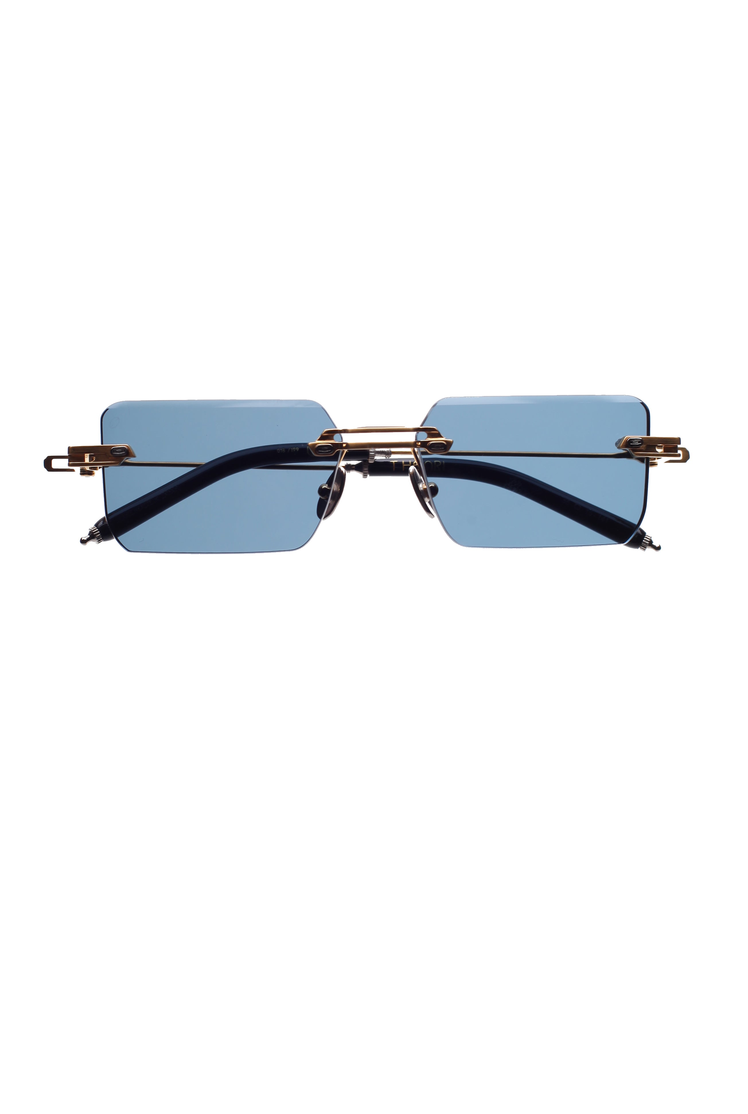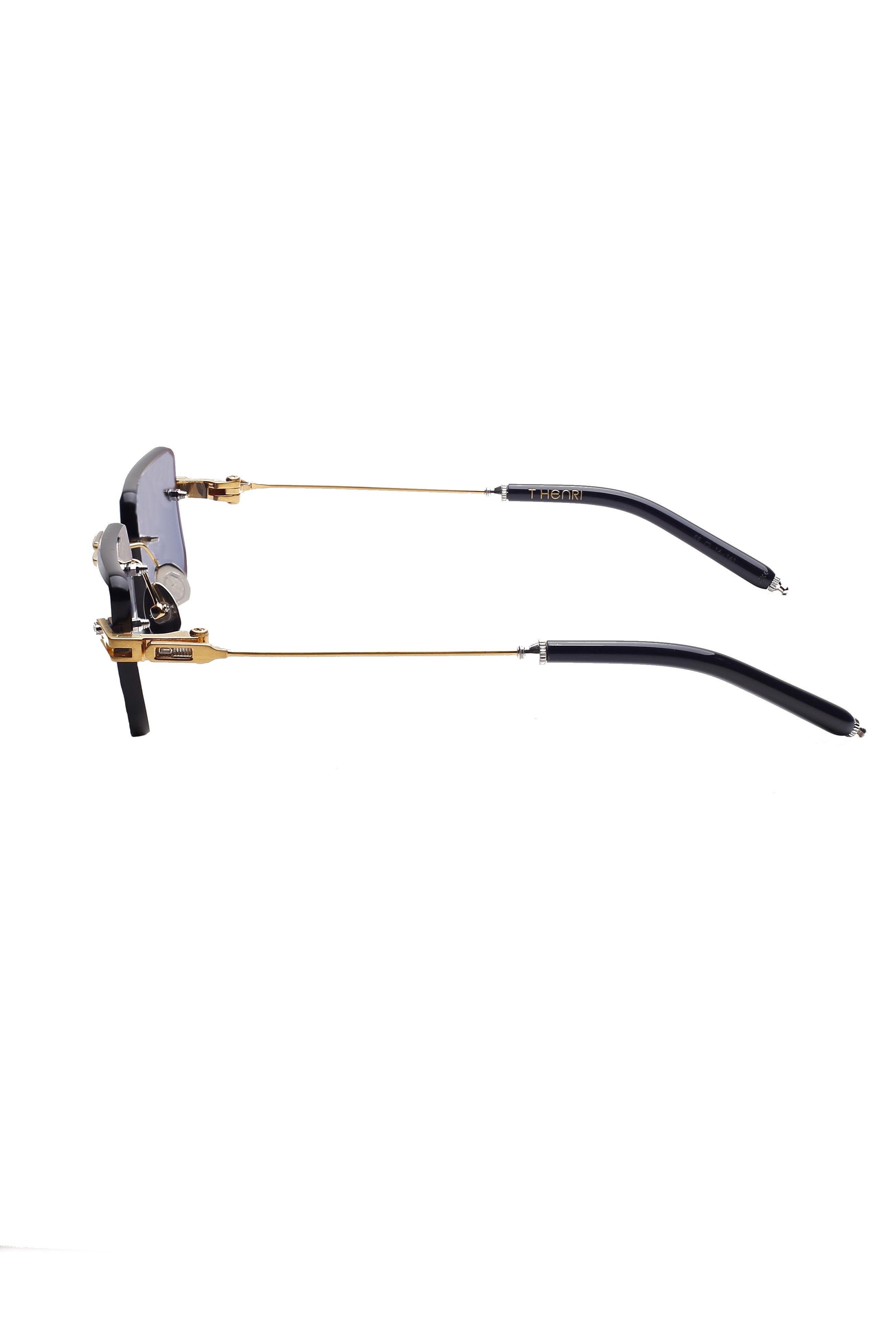 T Henri Evija limited edition modello da sole, forma rettangolare in titanio, laminato oro 18k fatto a mano in Giappone.