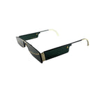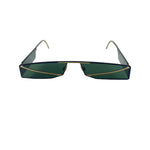 Voa Themisto marine blue limited edition in 24k titanium with rectangular shape, unisex, black and gold color with green lenses, handmade in Japan