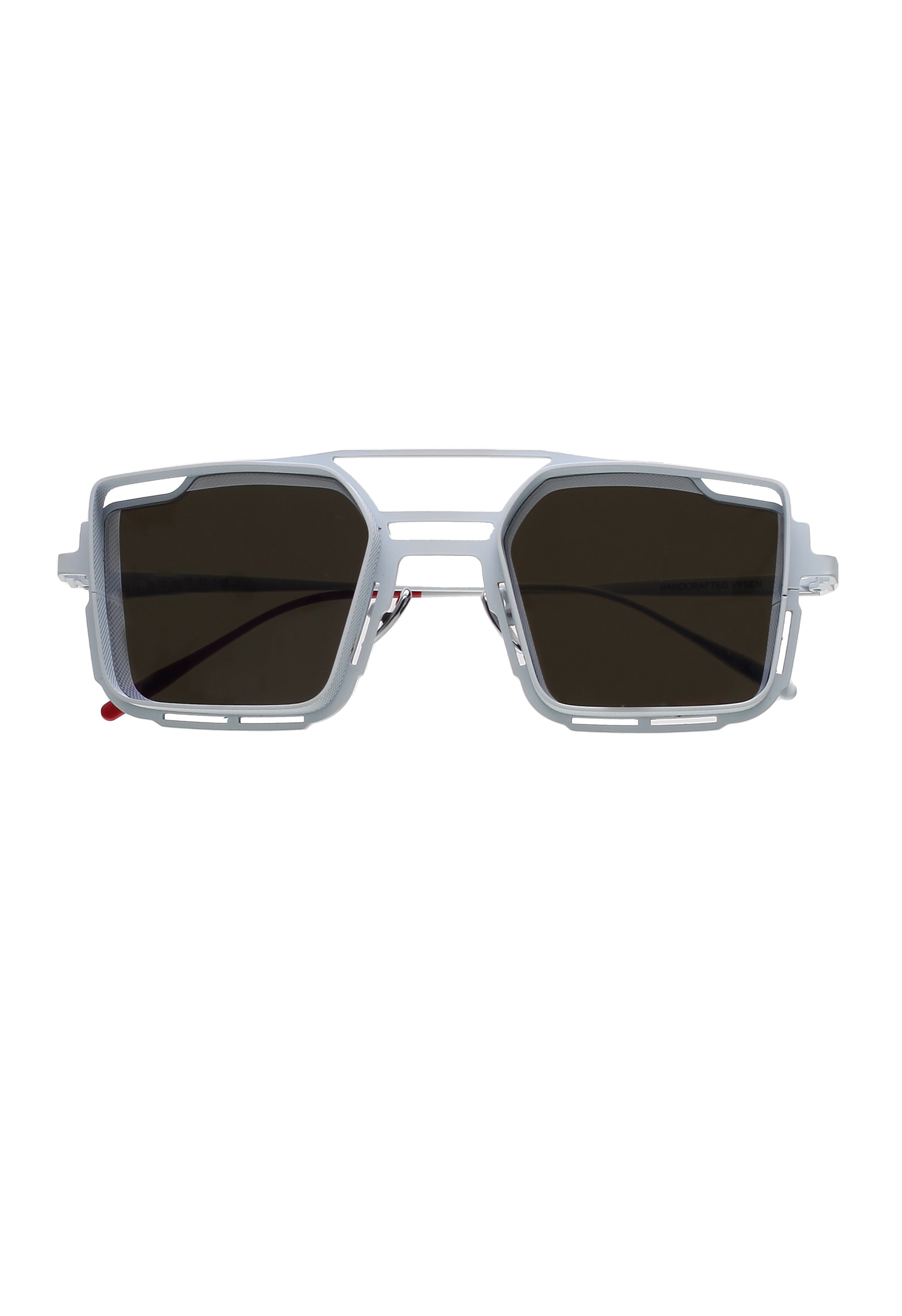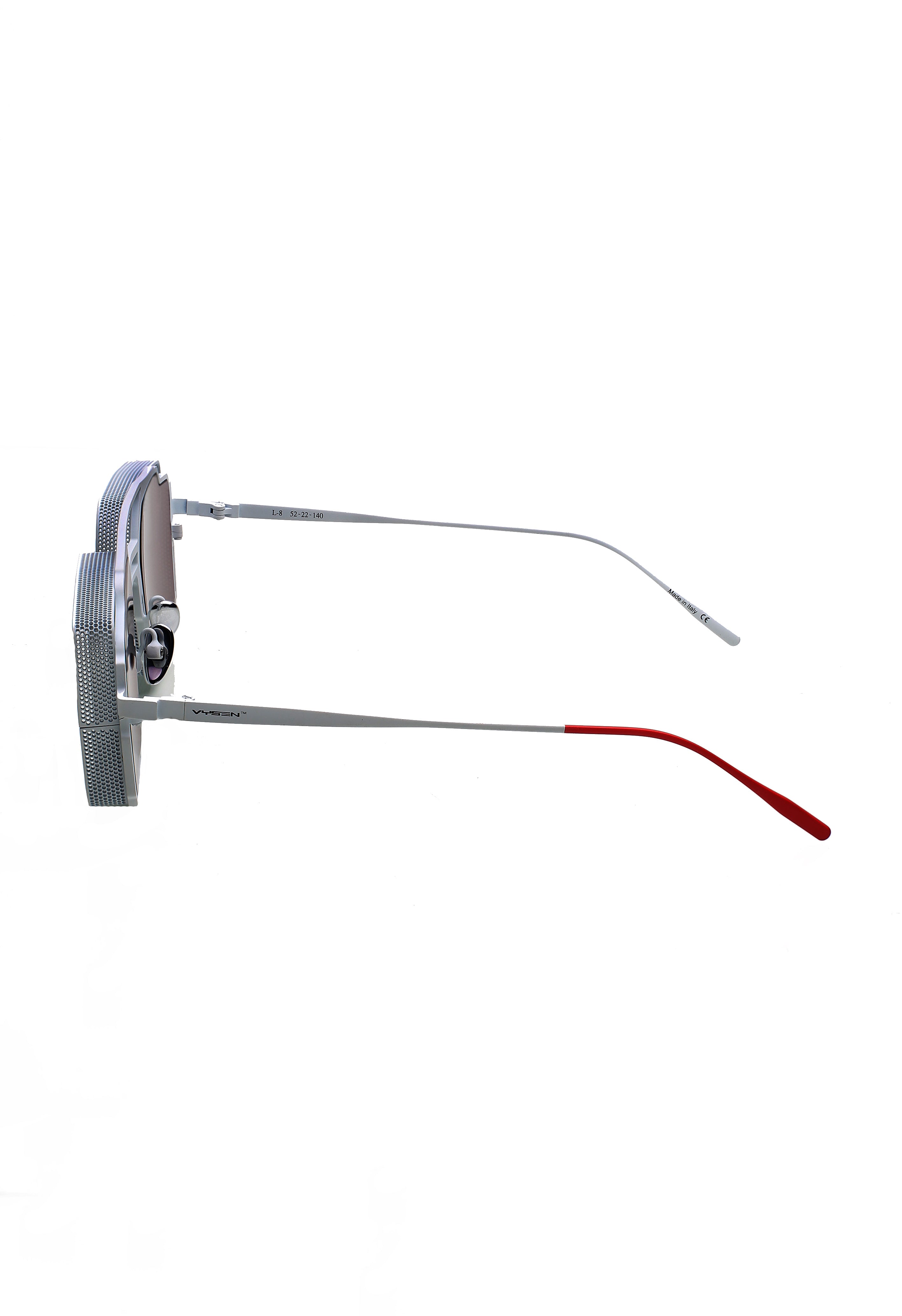 Vysen The Luigi L-8 white matte modello da sole colore bianco, forma quadrata in titanio fatto a mano in Italia.