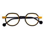 Anne Et Valentin Wellwell 24a25 modello da vista colore giallo e nero, forma rotonda in titanio fatto a mano in Giappone.