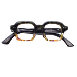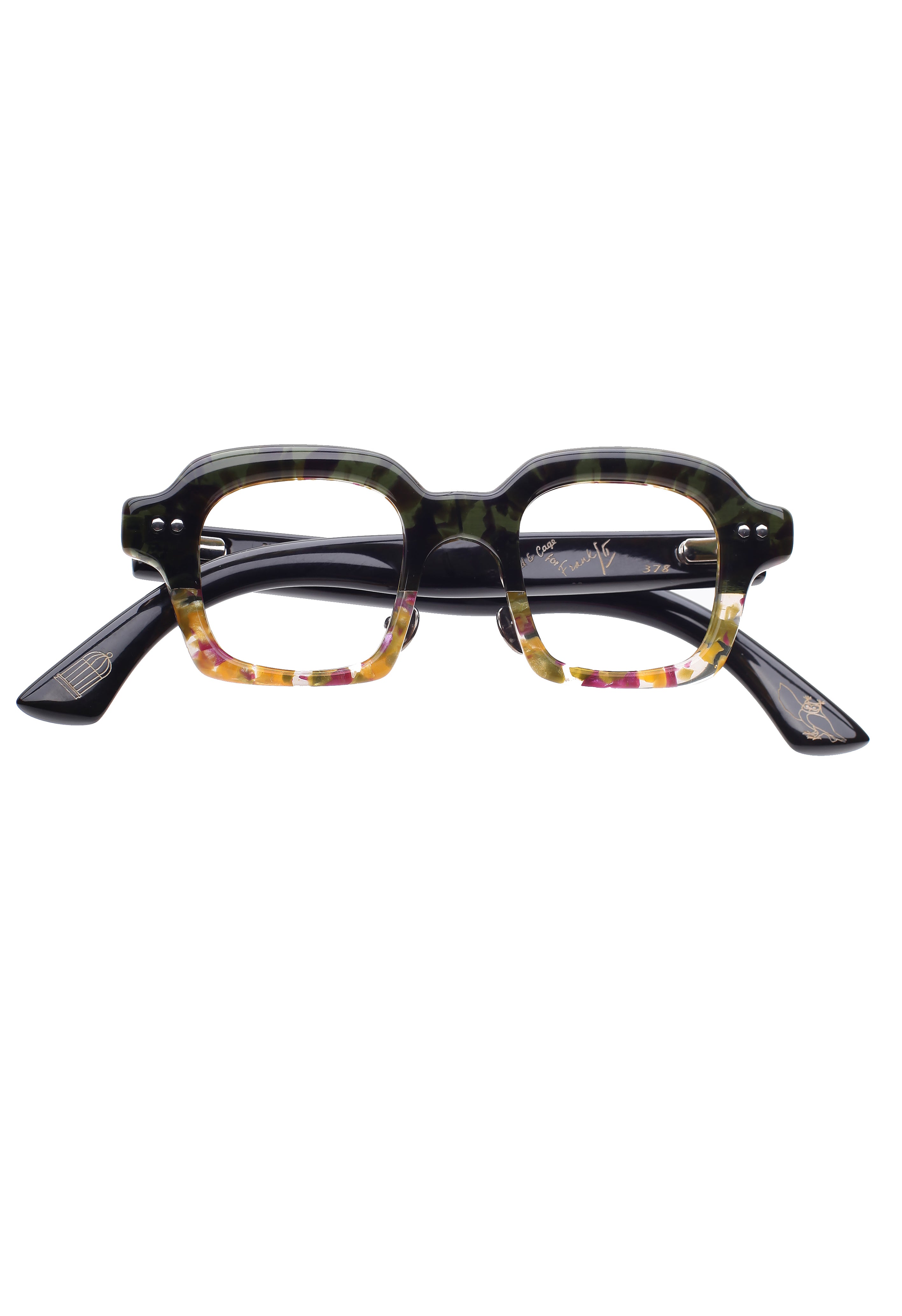 Bird & Cage x Frank Lo 378 green/cry modello da vista verde e mix color, forma quadrata in corno naturale ed acetato fatto a mano a New York.