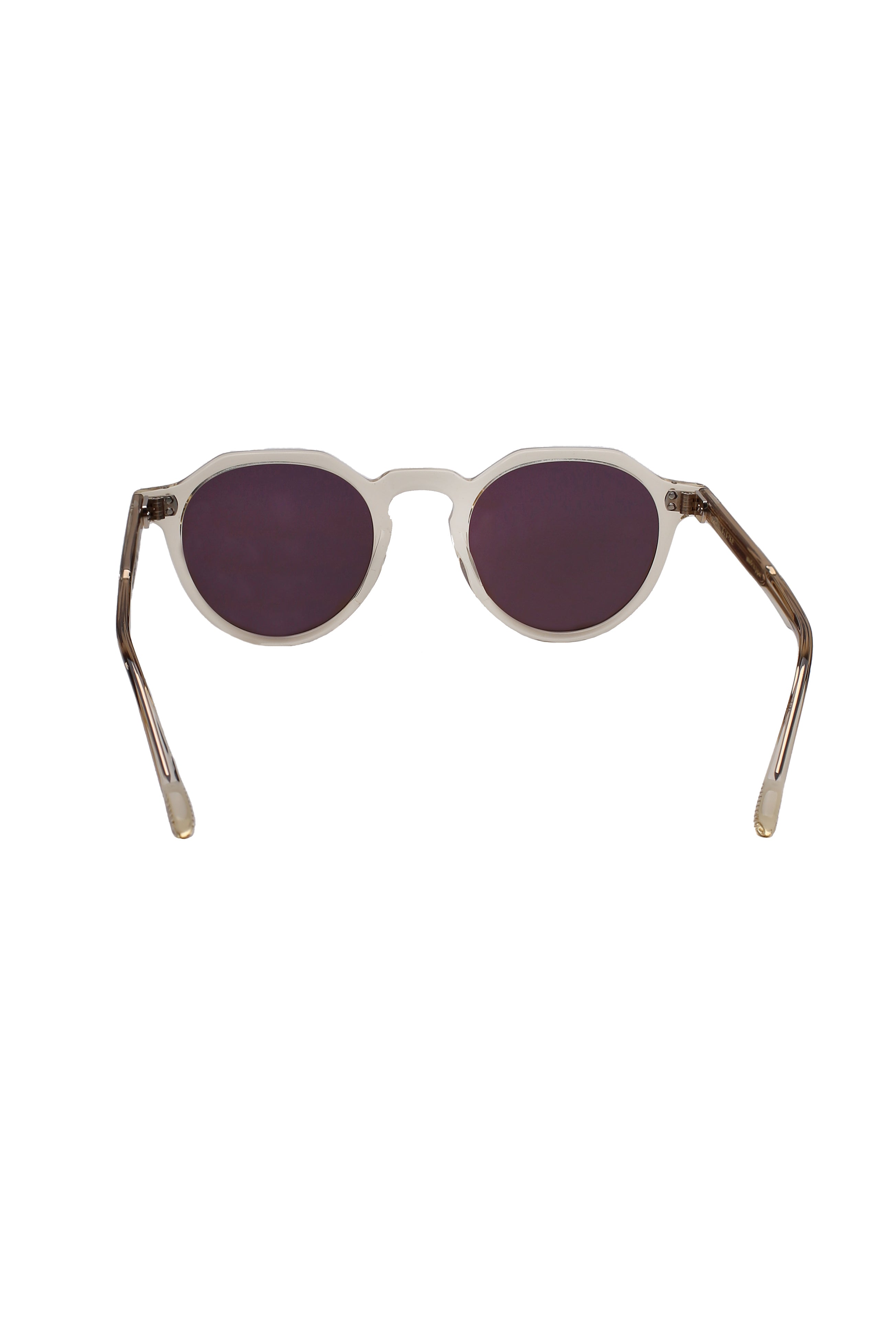 Eyevan Attached-e sun llt modello da sole colore beige, forma rotonda in acetato fatto a mano in Giappone.