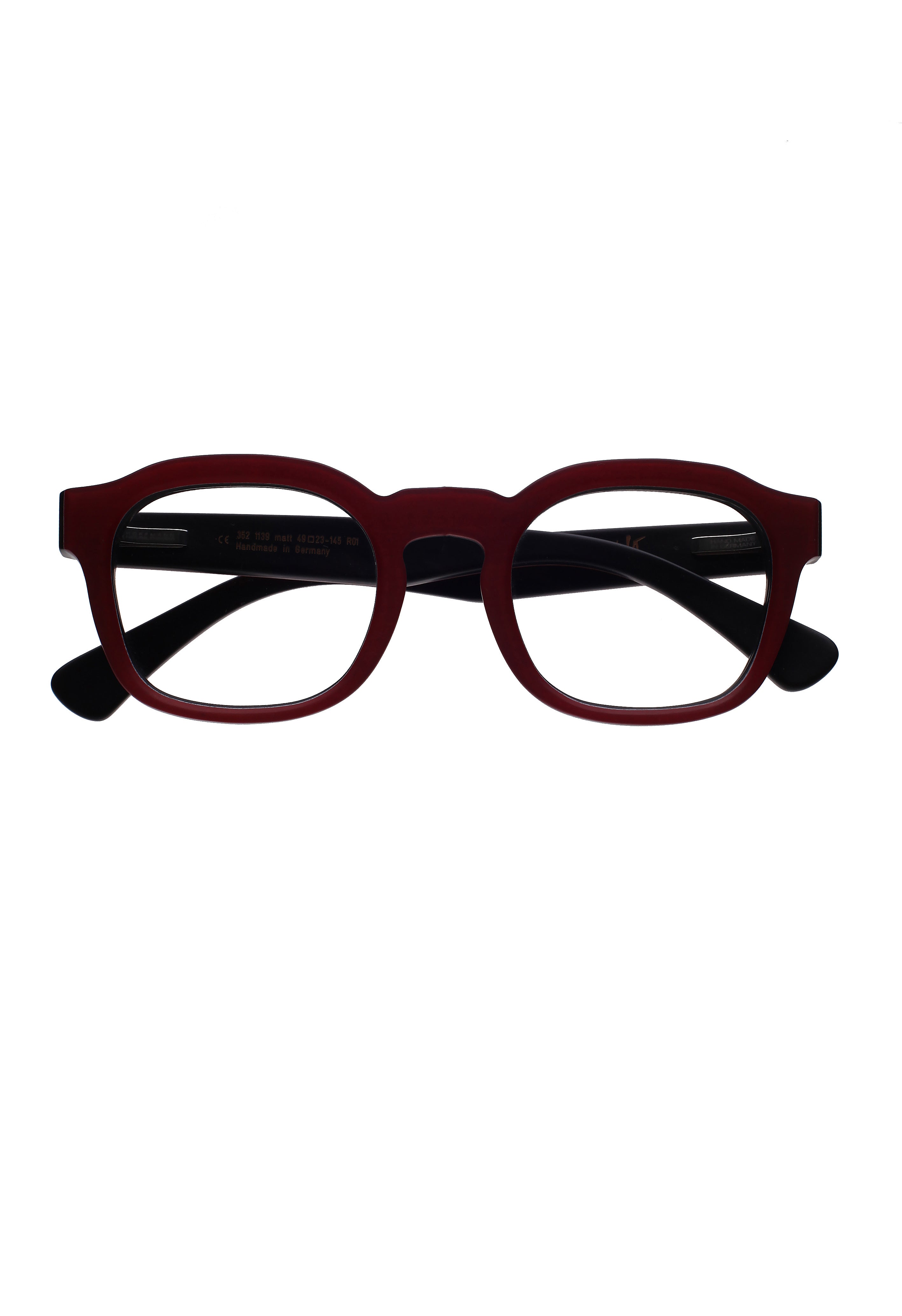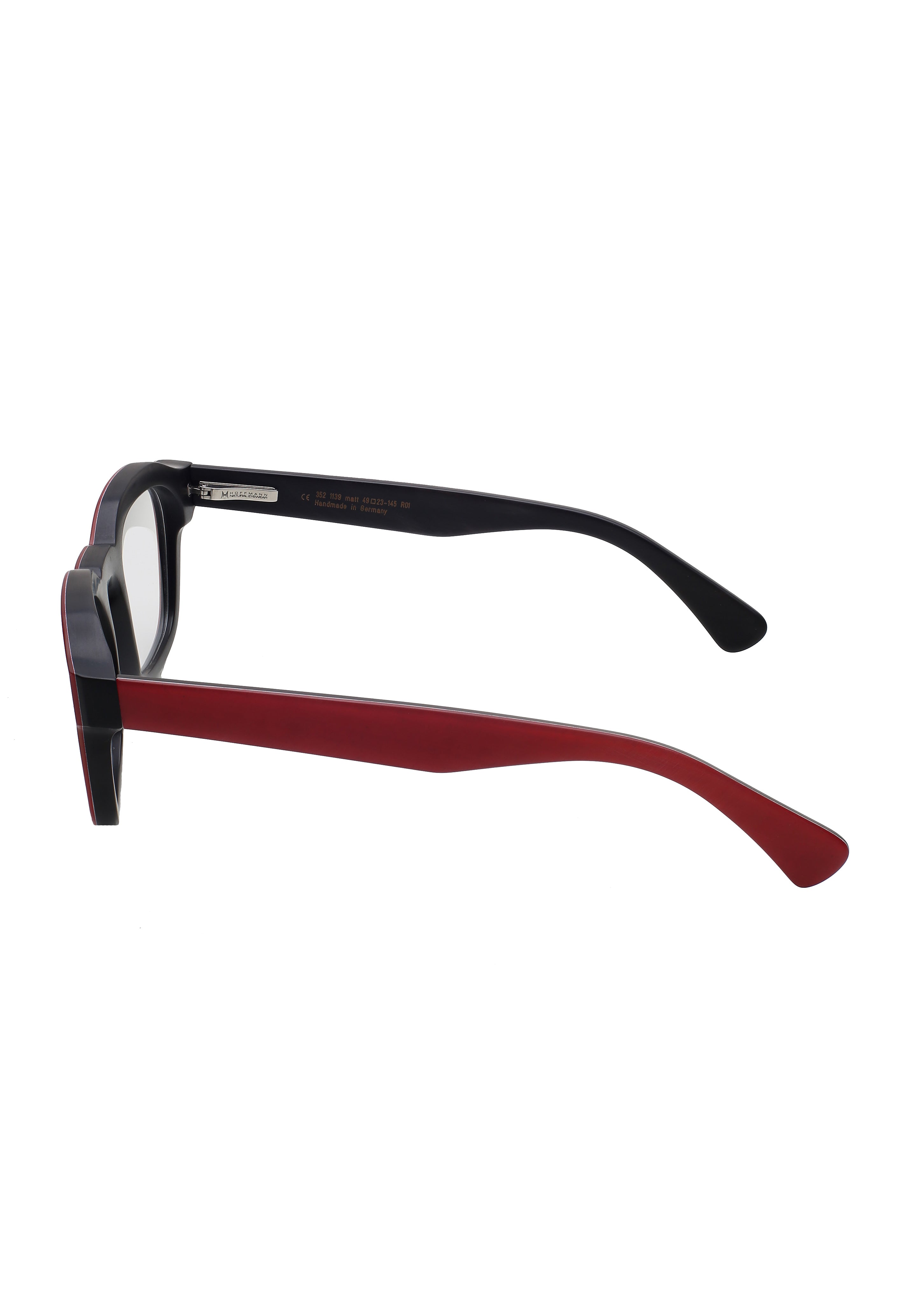 Hoffmann x Frank Lo 352 1139 matte modello da vista colore rosso, forma quadrata in corno naturale fatto a mano in Germania,