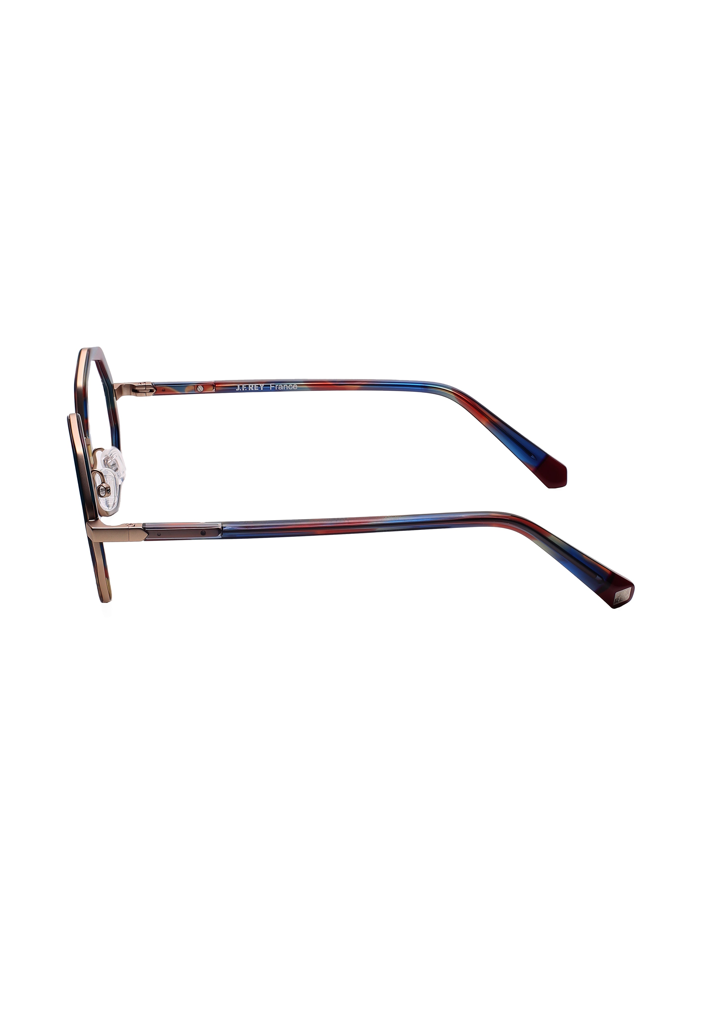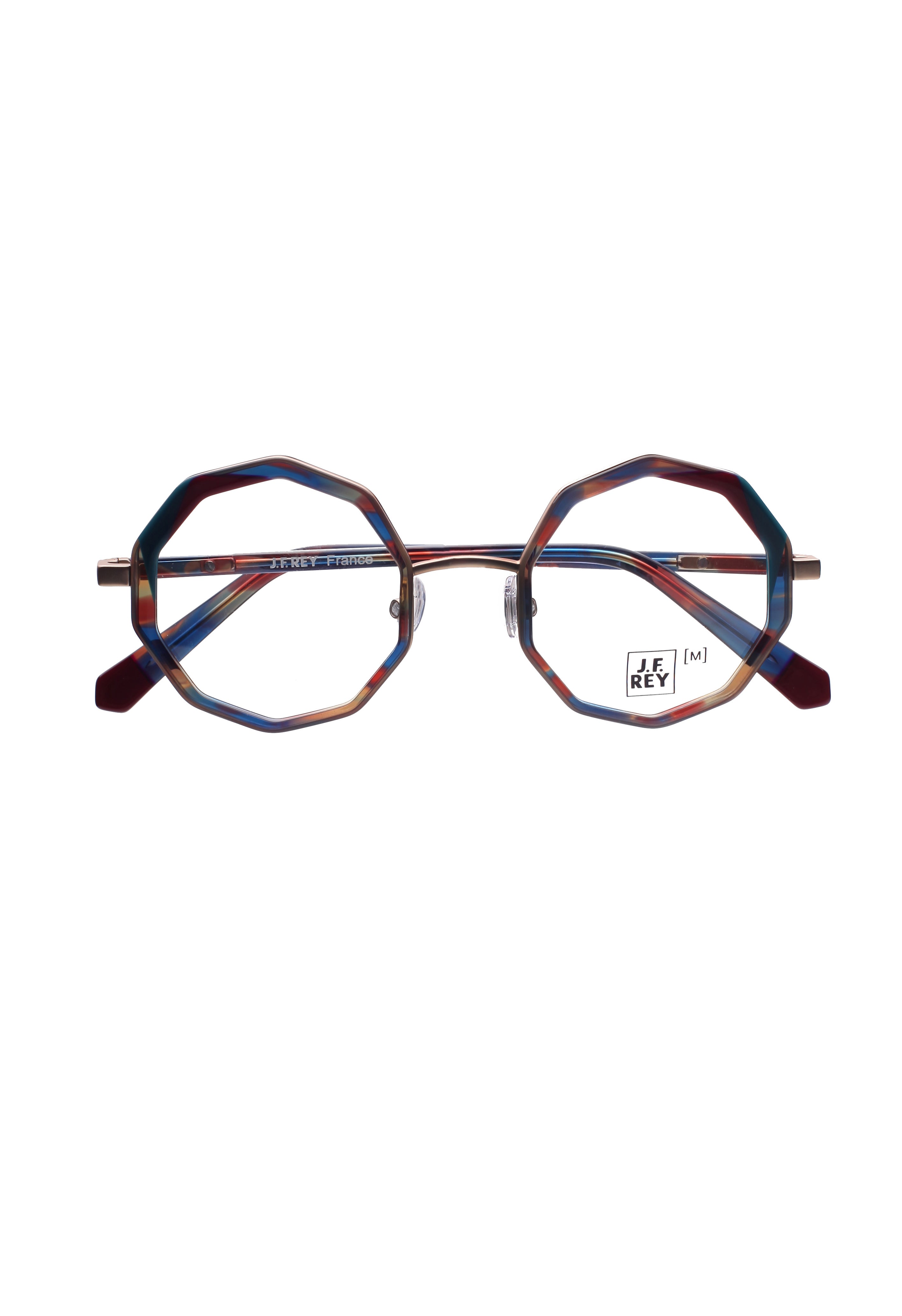 Il modello J.F. Rey JF 3103 m è un occhiale da vista dal design originale e contemporaneo, caratterizzato da una montatura rotonda con geometrie sfaccettate, in una combinazione di metallo e acetato.