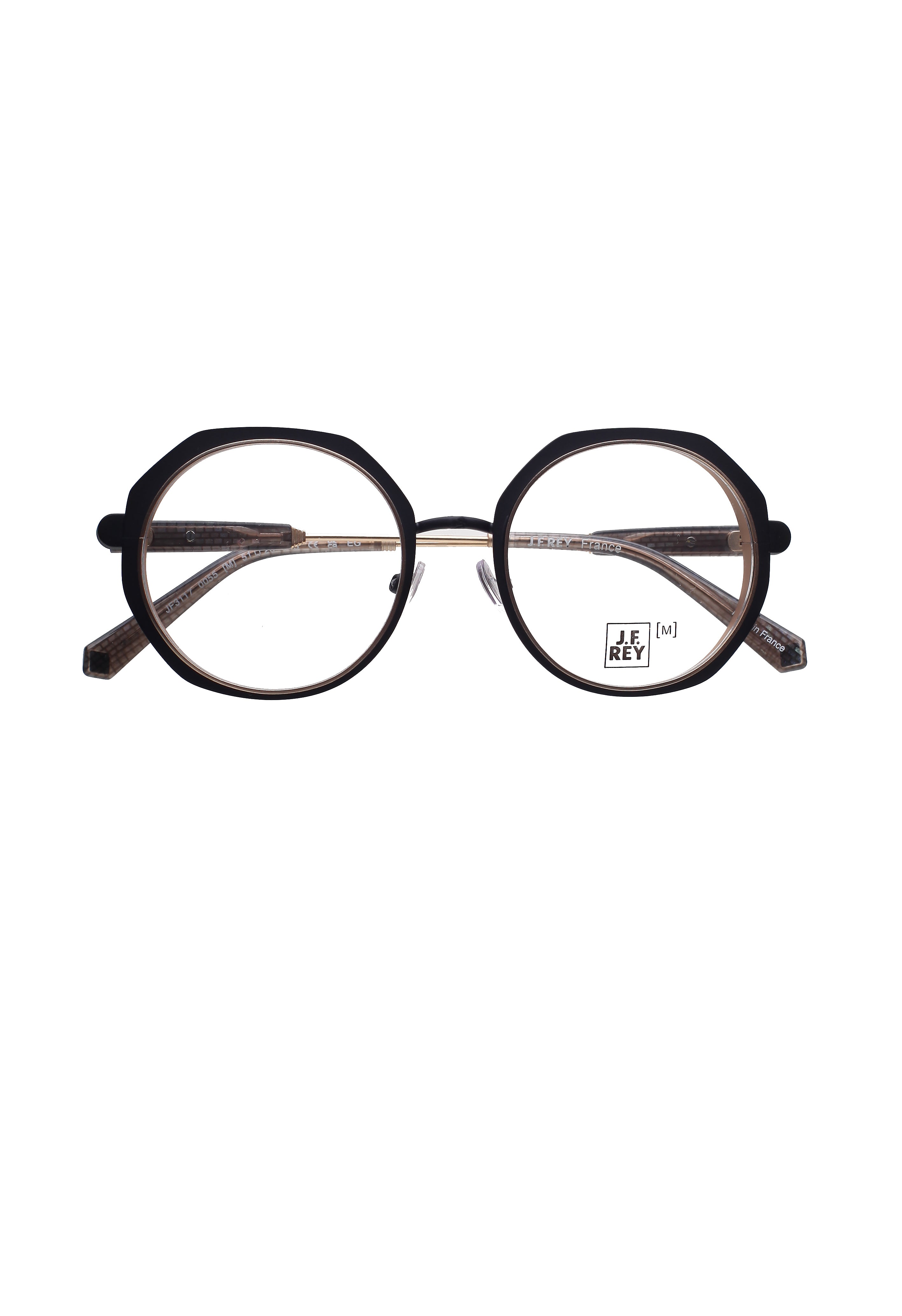 J.F.Rey jf 3117 0055 M modello da vista colore nero e oro, forma rotonda in metallo ed acetato fatto a mano in Francia.