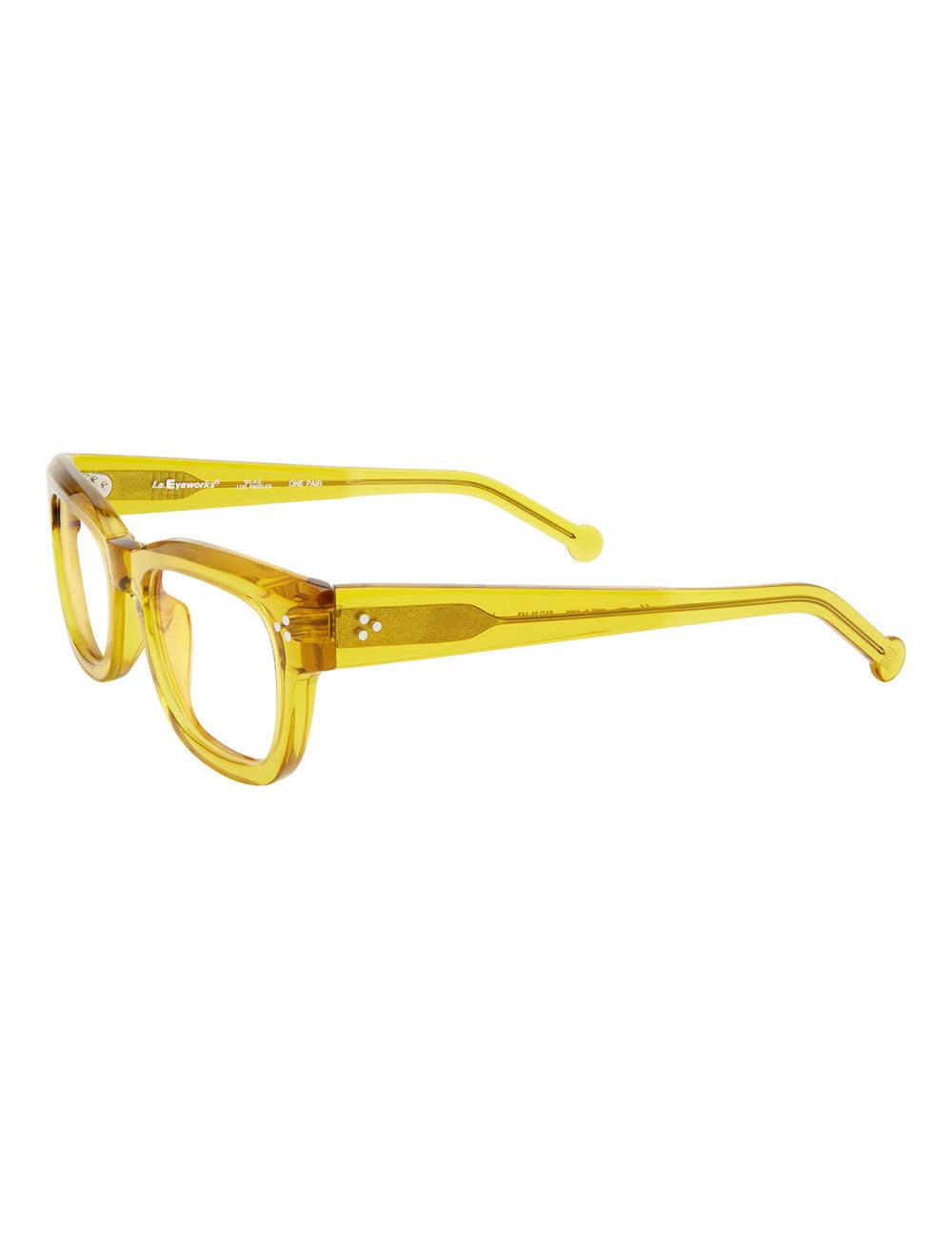 L.A Eyeworks Lagos 716 modello da vista colore giallo, forma rettangolare in acetato fatto a mano in Giappone.