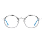 L.A. Eyeworks Silo 401 silver modello da vista colore argento, forma rotonda in titanio fatto a mano in Giappone.