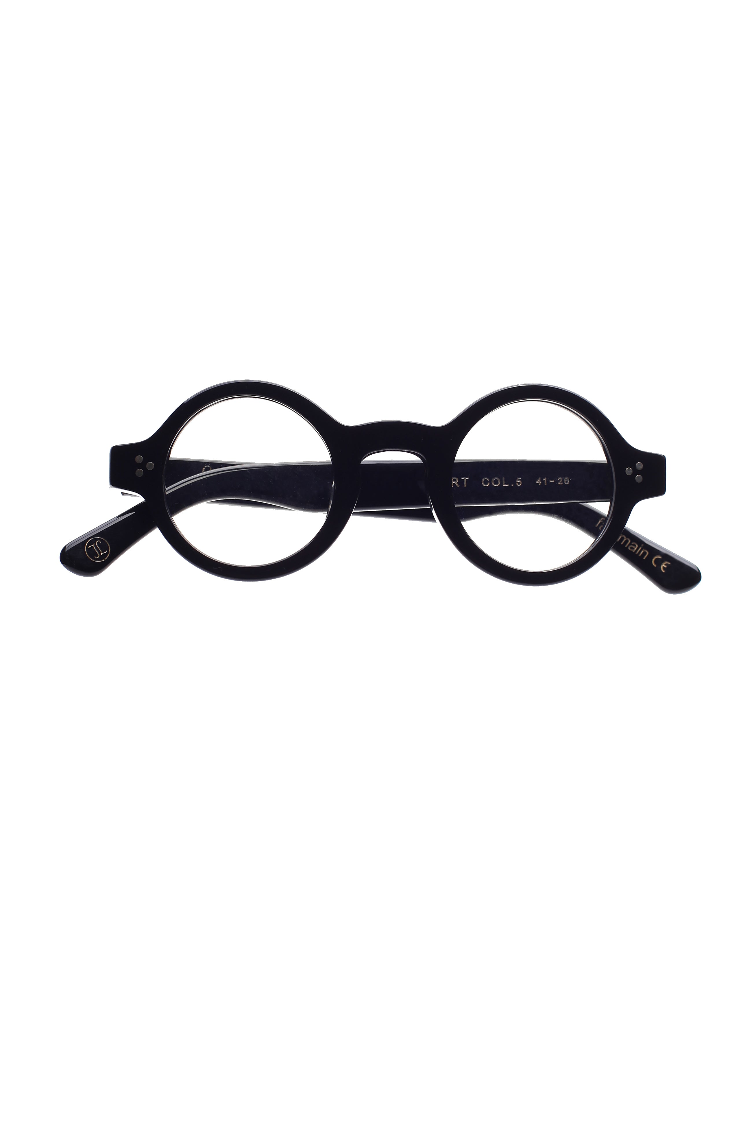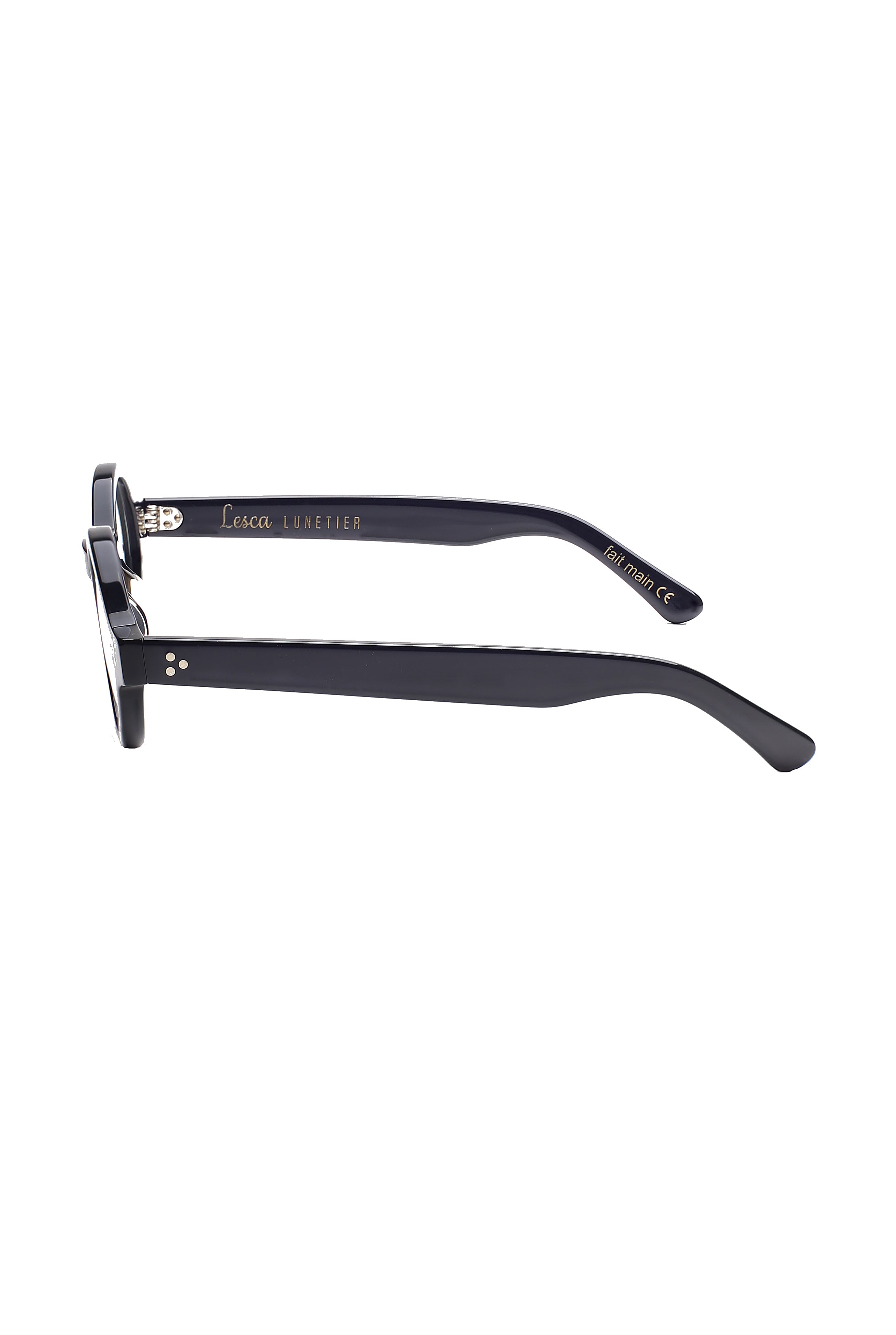 Lesca Burt 5 modello da vista colore nero, forma rotonda in acetato fatto a mano in Francia.