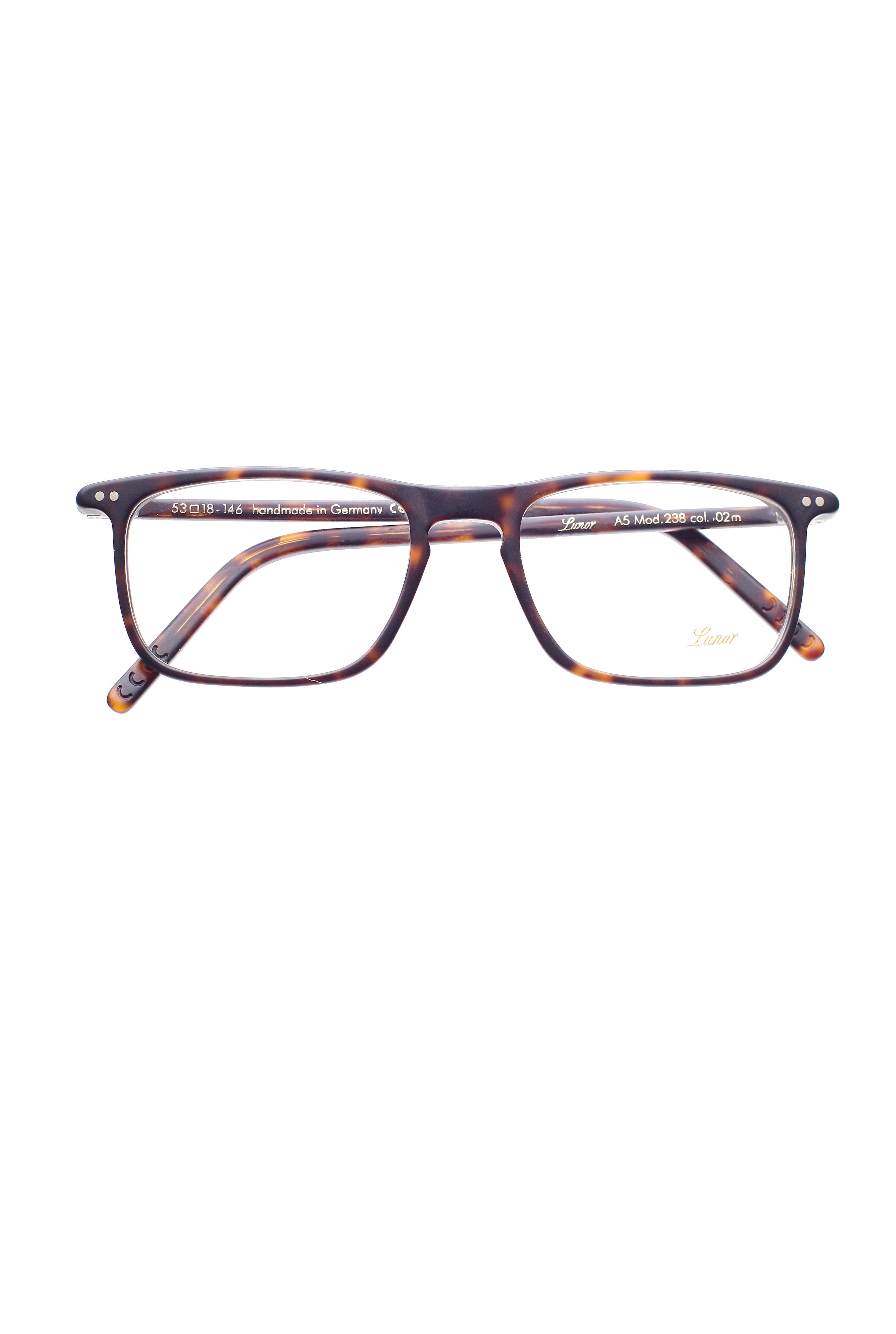 Lunor 238 02m modello da vista colore marrone opaco, forma rettangolare in acetato fatto a mano in Germania.