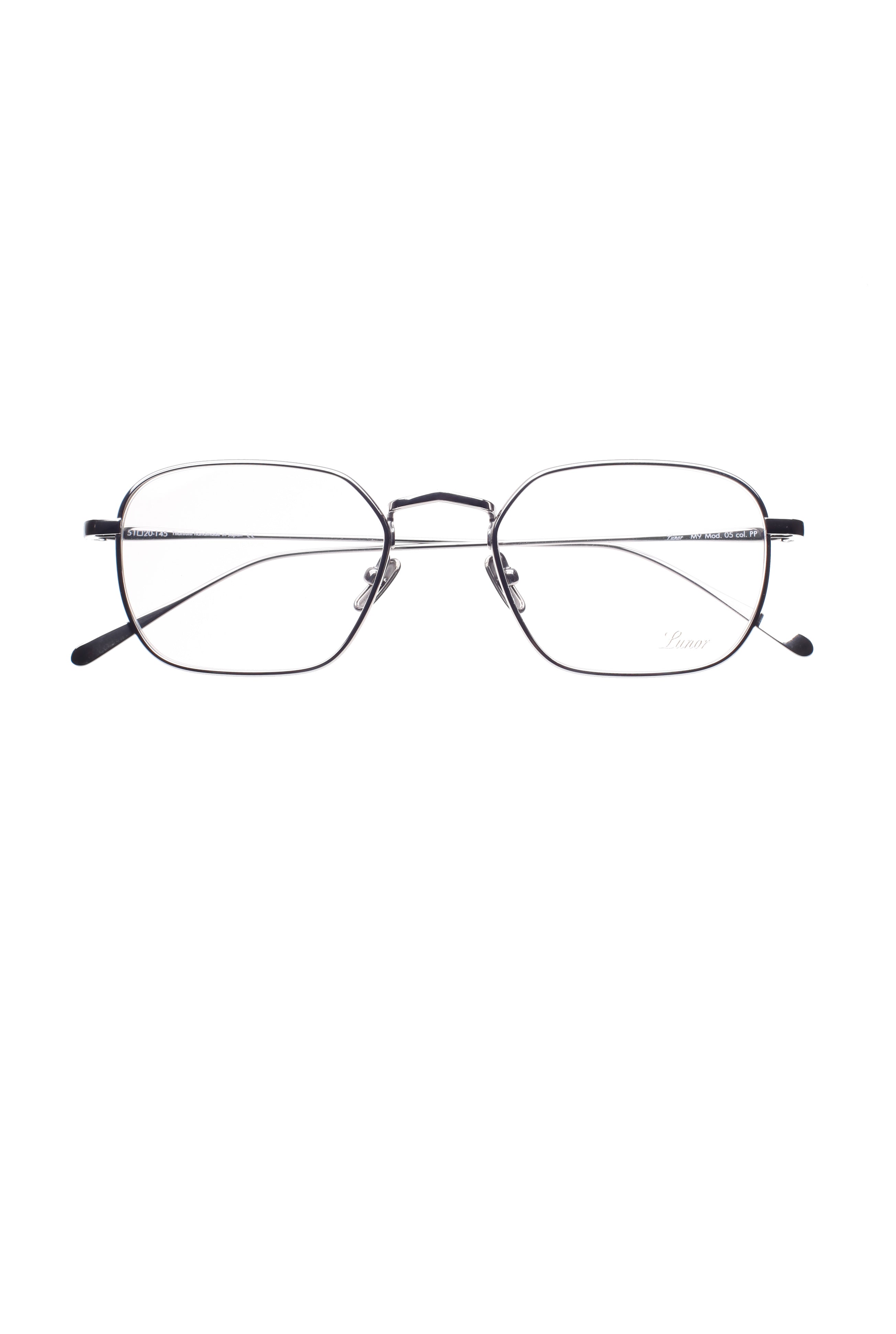 Lunor M9 05 PP modello da vista colore grigio, forma rettangolare in titanio fatto a mano in Giappone.