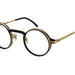 Masunaga By Kenzo Takada 19 Quince modello da vista colore nero e oro, forma rotonda in titanio ed acetato fatto a mano in Giappone.