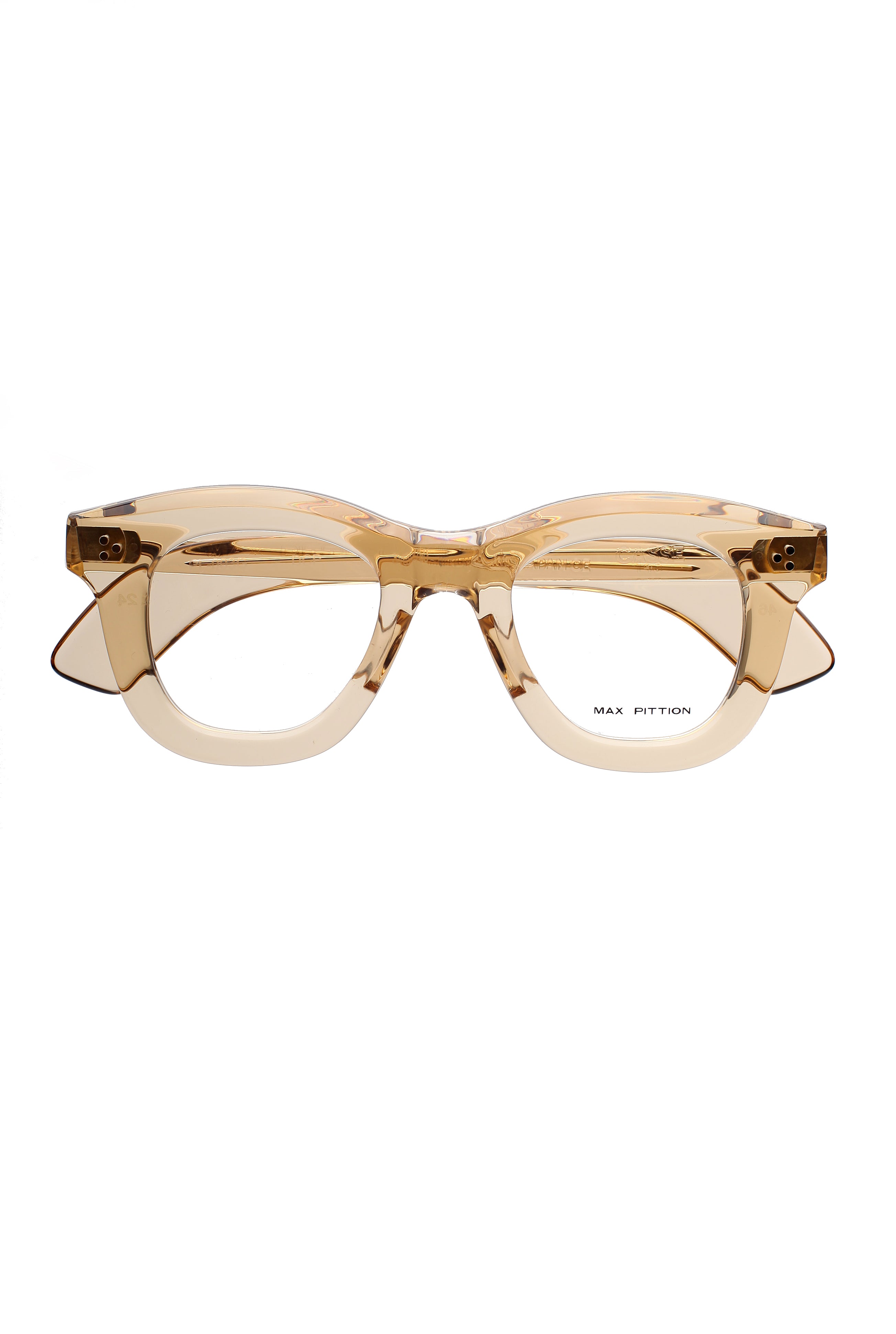 Max Pittion Casse pl-003g s.3dcp dusty champagne limited edition 32/50 modello da vista colore beige, forma quadrata in acetato ed ottone fatto a mano in Giappone.