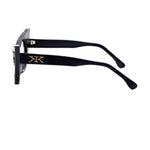 Okkul Brynn matte bk heavily ornaments limited edition modello da sole colore nero, forma a gatto in acetato e argento fatti a mano in Ungheria.