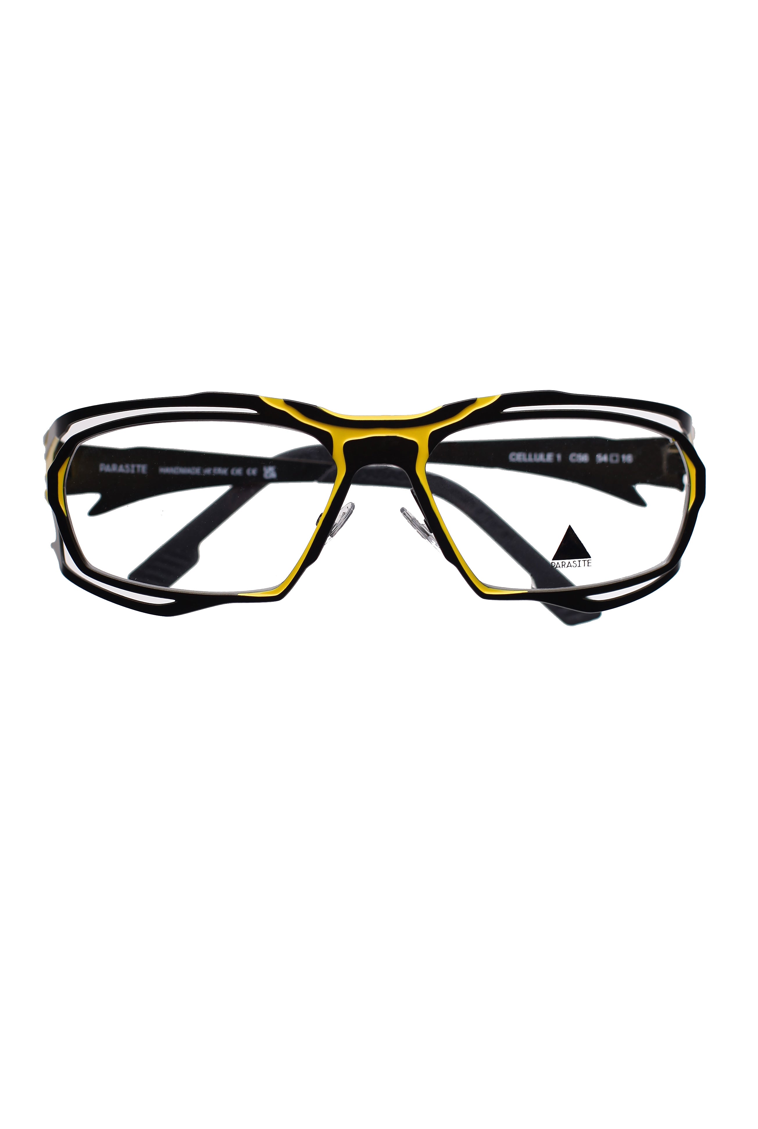 Parasite Cellule 1 c56 modello da vista colore nero e giallo, forma rettangolare in metallo fatto a mano in Francia.
