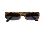 Ralph Vaessen Thyssen gold 01 modello da sole nero e oro, forma rettangolare in corno naturale e lamine d'oro fatto a mano in Germania.