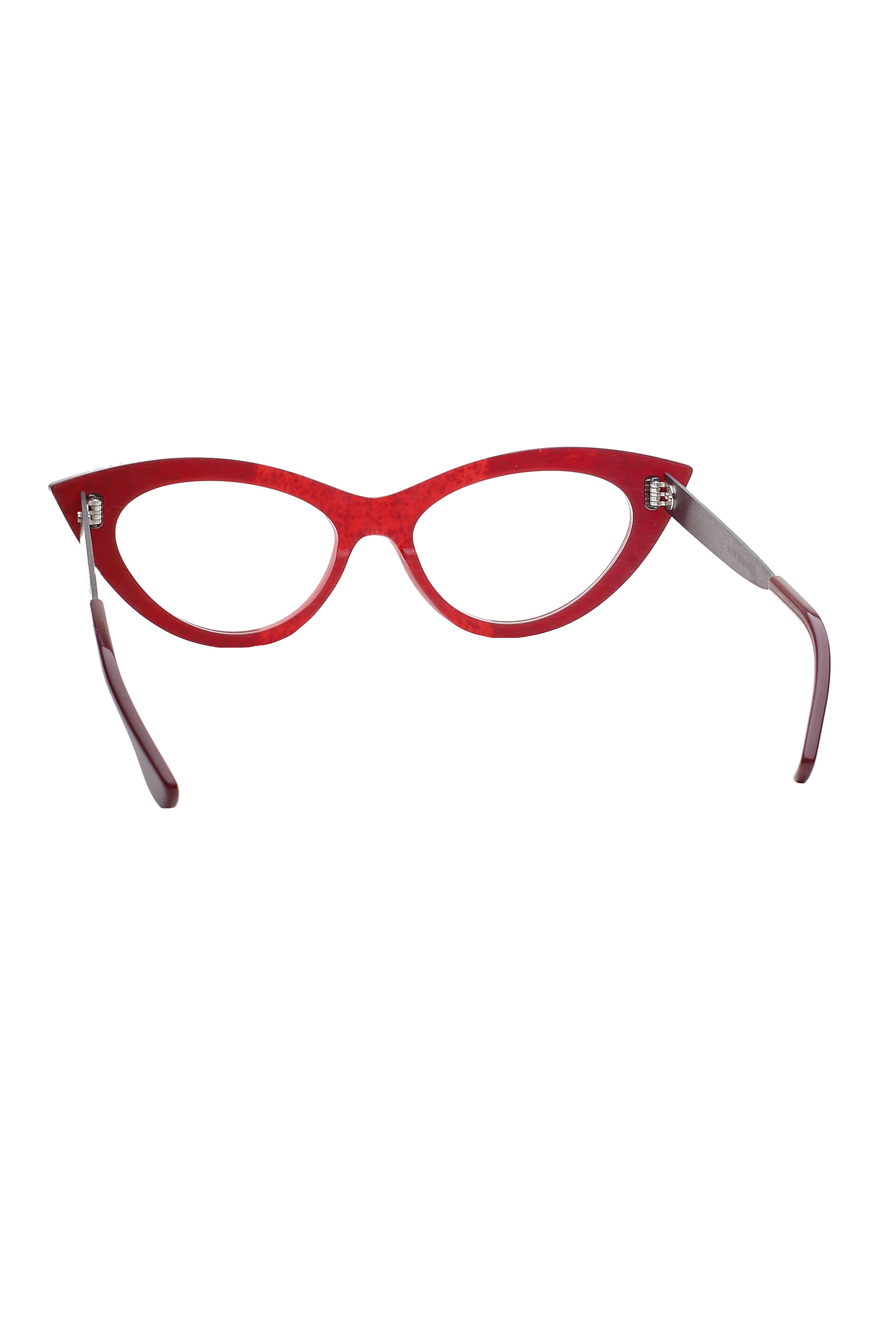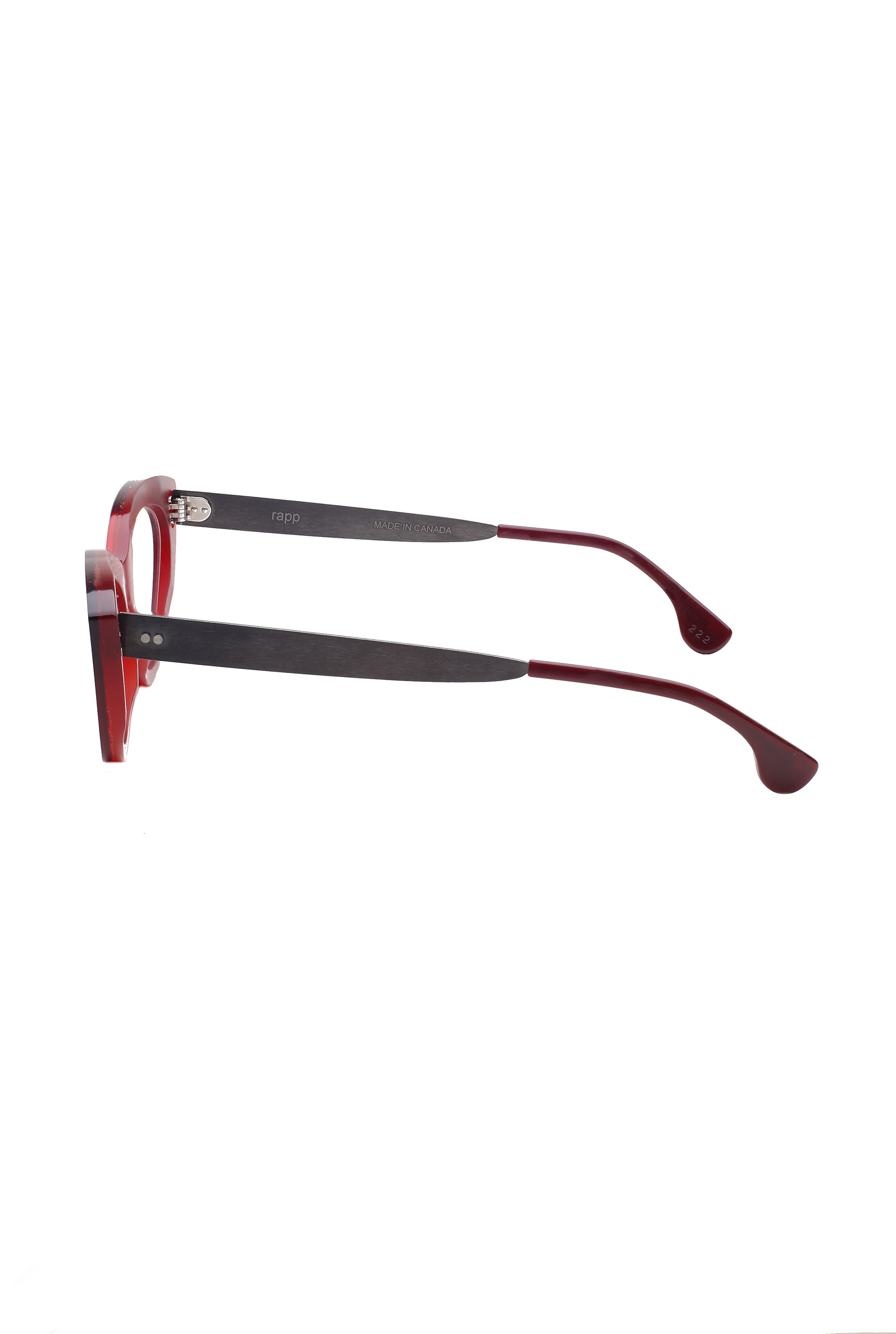 Rapp Sue red glitter grad blk arms modello da vista colore rosso, forma a gatto in acetato e titanio fatto a mano in Canada.