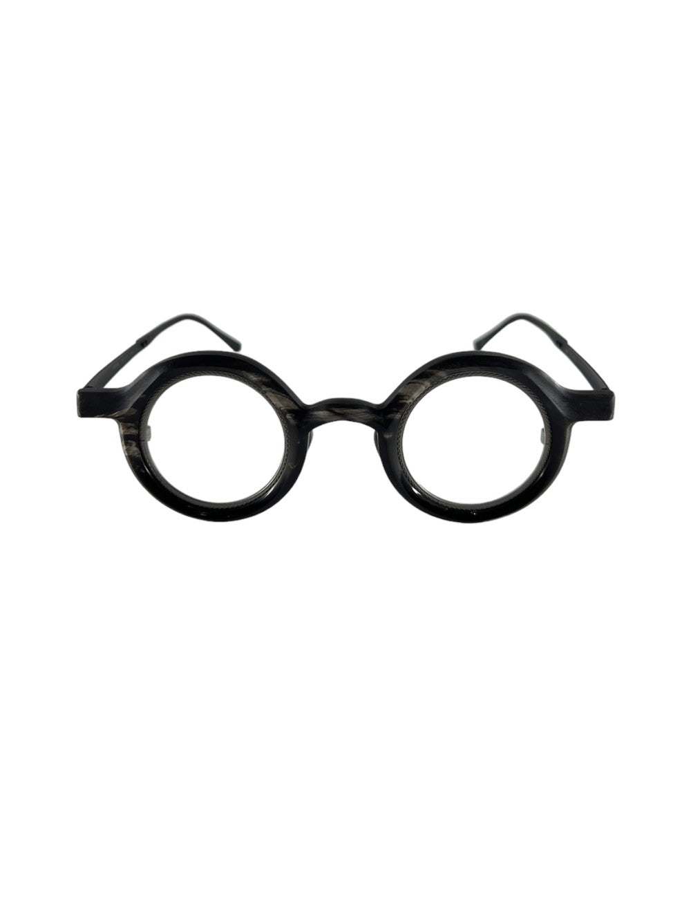 Rigards RG 1062 black white fa062 modello da vista colore nero, forma rotonda in corno naturale e titanio fatto a mano.