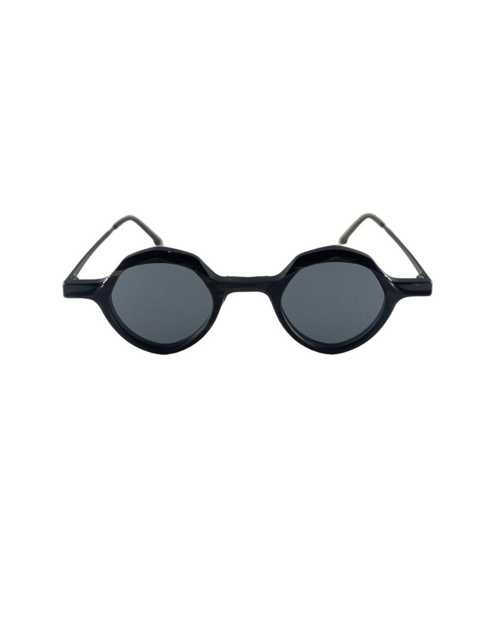 Rigards RG 1094 el085 black modello da sole colore nero, forma rotonda in corno naturale e titanio fatto a mano.