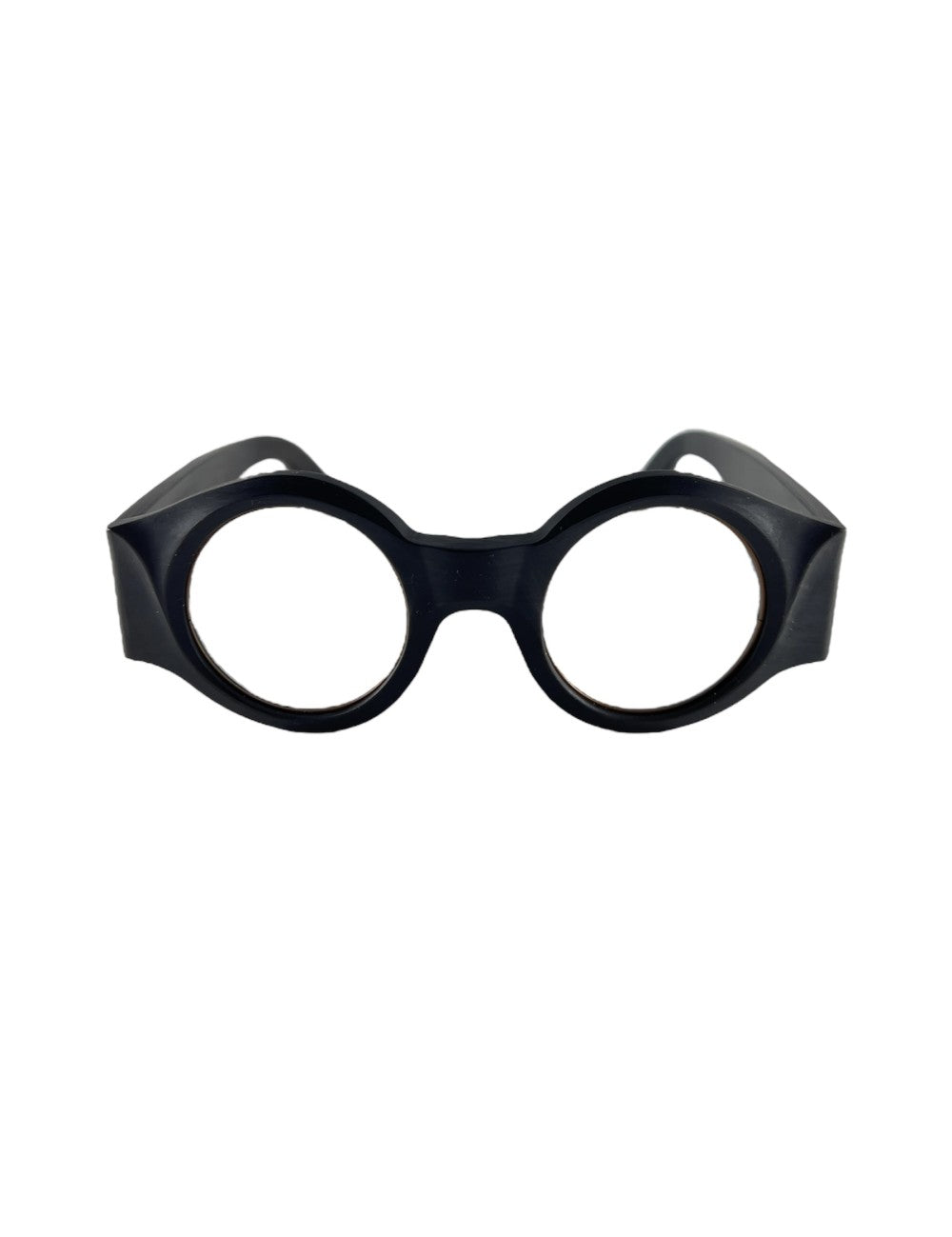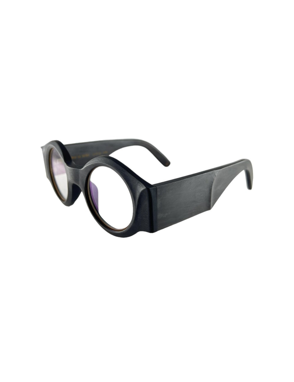 Rigards+Uma Wang RG UW16 le horn fa069 blk modello da vista colore nero, forma rotonda in corno naturale e titanio fatto a mano.