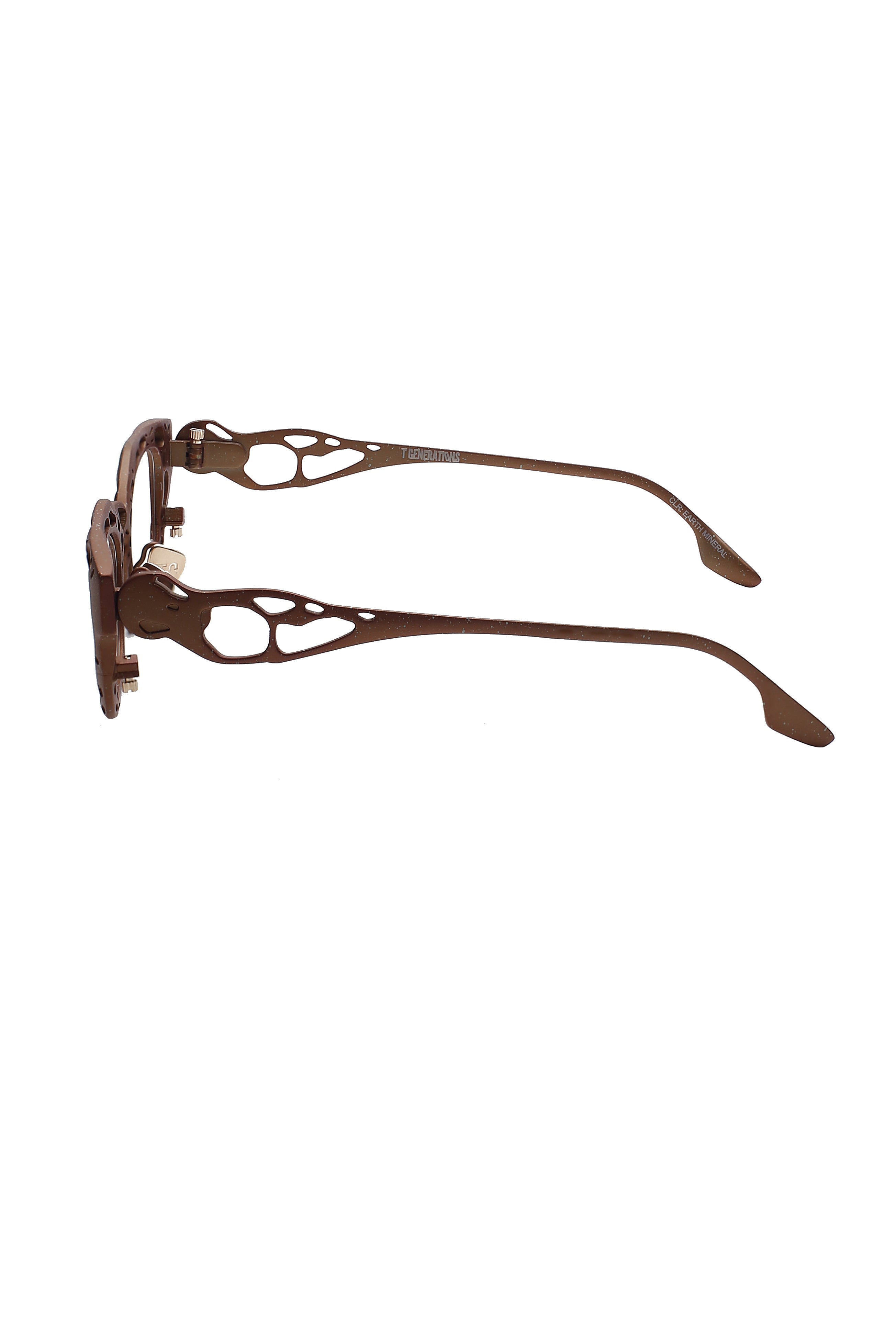 T Generations Trypophiliac Earth mineral modello da vista colore marrone, forma rettangolare in titanio fatto a mano in Giappone.