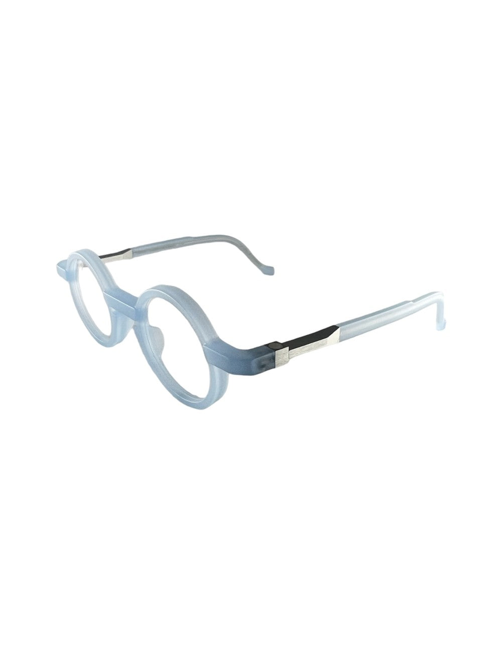 Vava WL 0068 aqua haze matte sil flex modello da vista colore azzurro, forma rotonda in acetato ed alluminio fatto a mano in Italia.