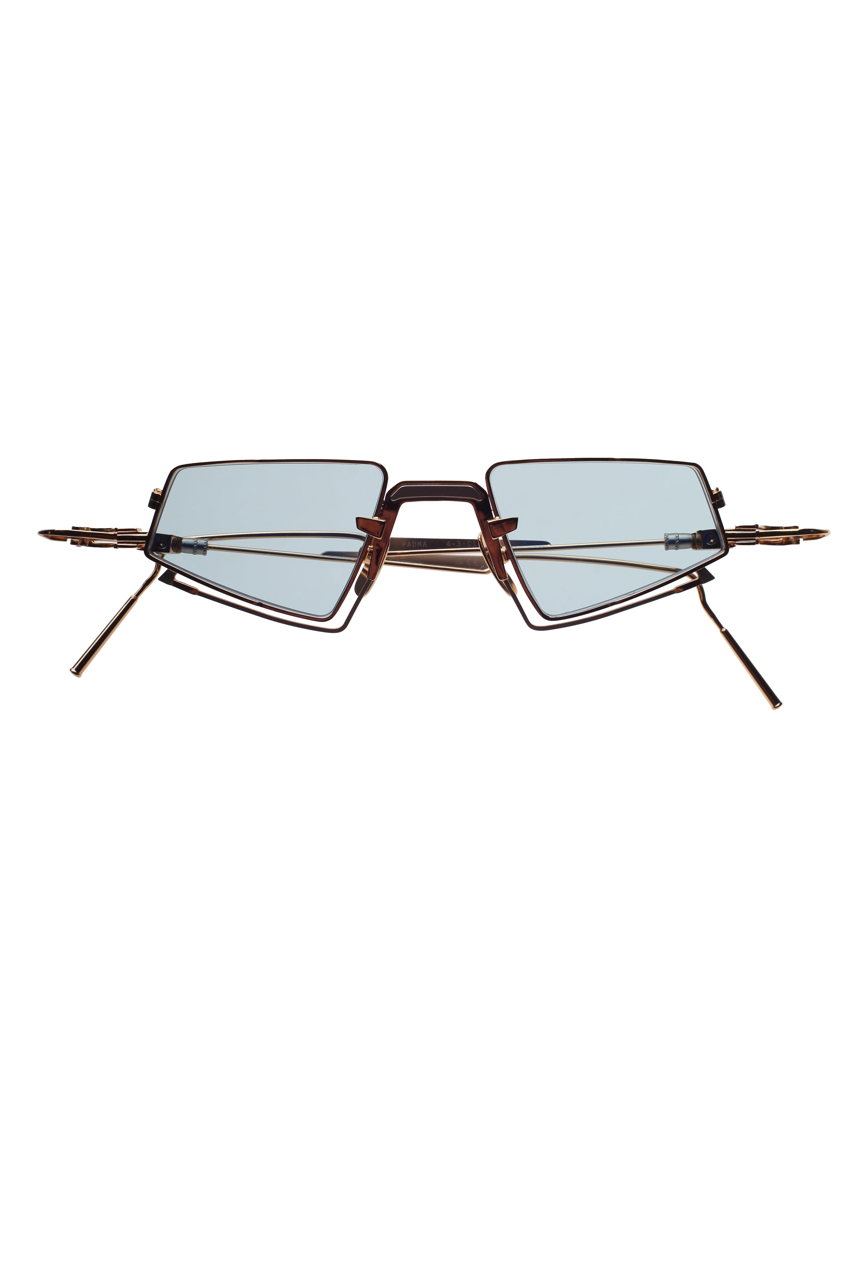 Voa Padma 4-3 limited edition modello da sole, forma quadrata in titanio laminato oro fatto a mano in Giappone.